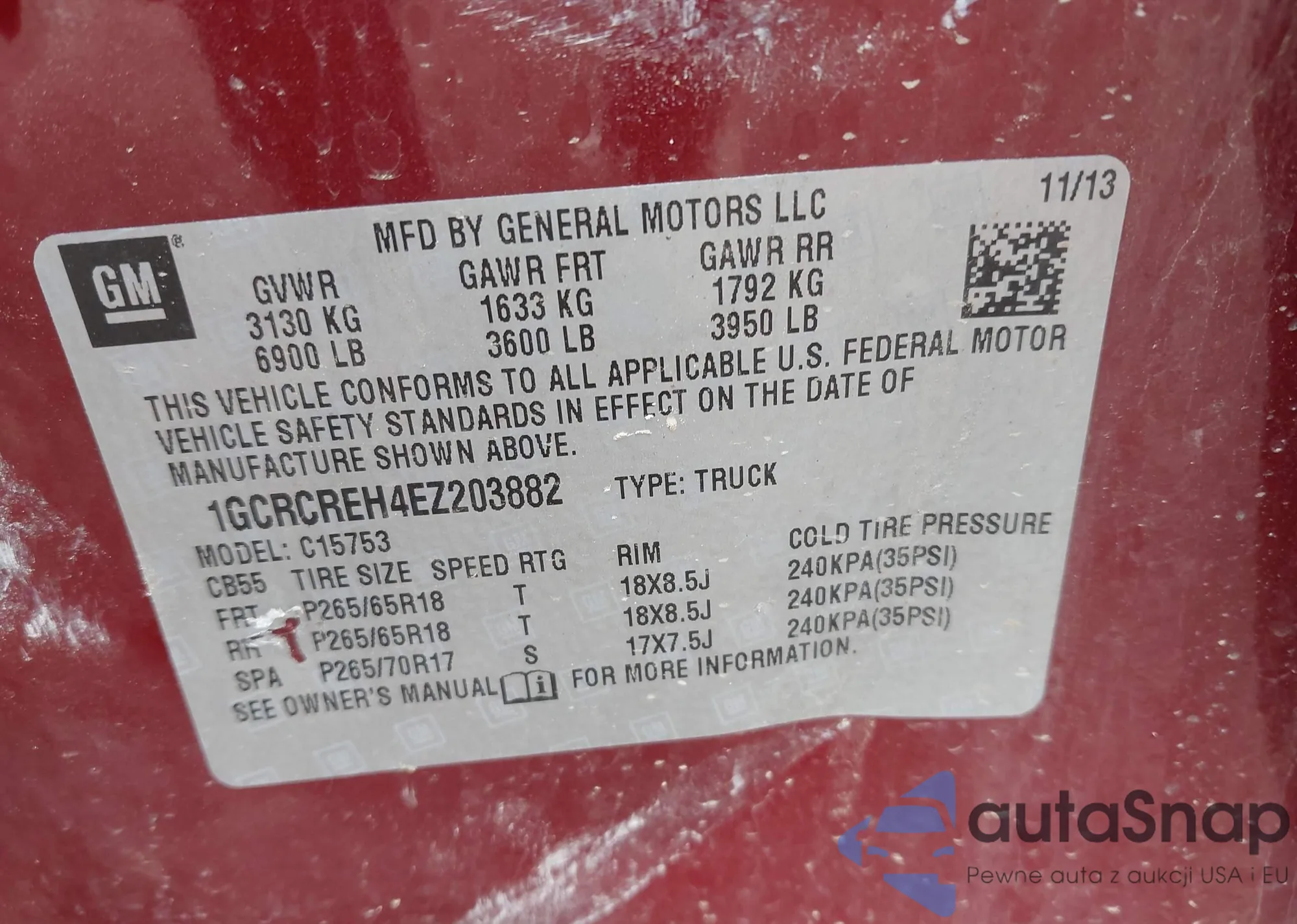 LOT: 42068804 VIN: 1GCRCREH4EZ203882