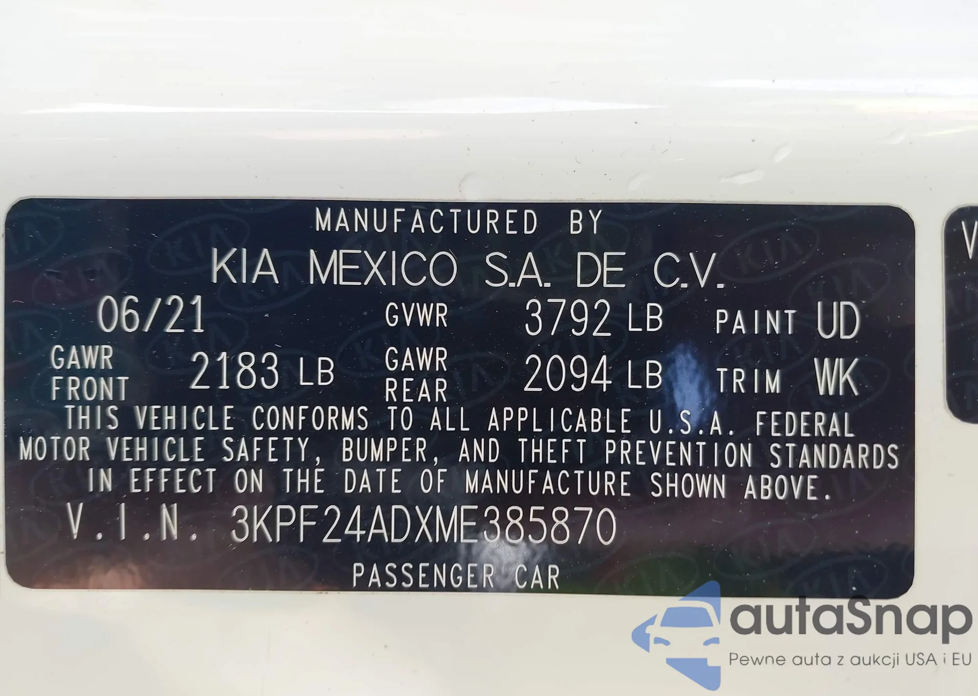 LOT: 42077211 VIN: 3KPF24ADXME385870