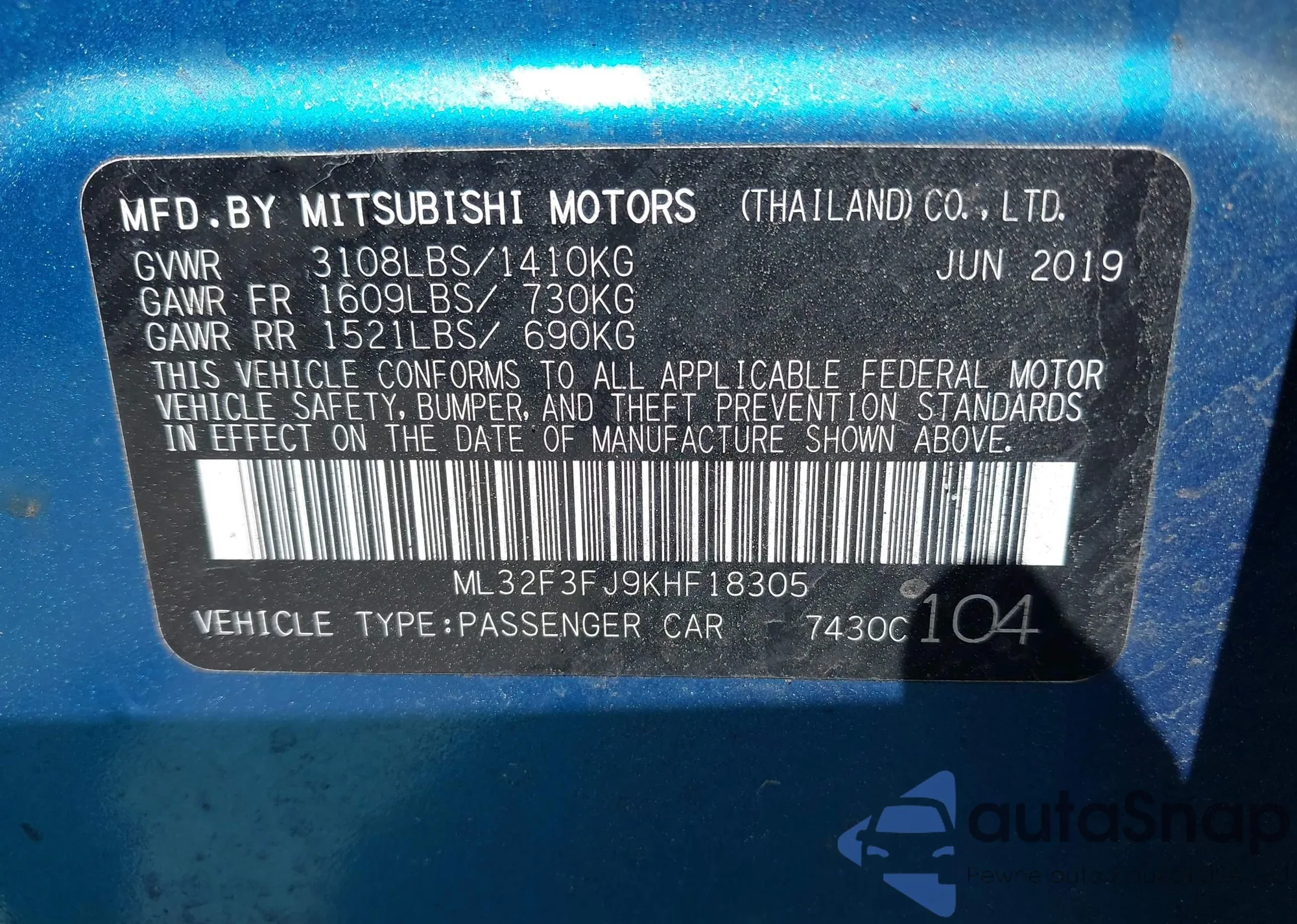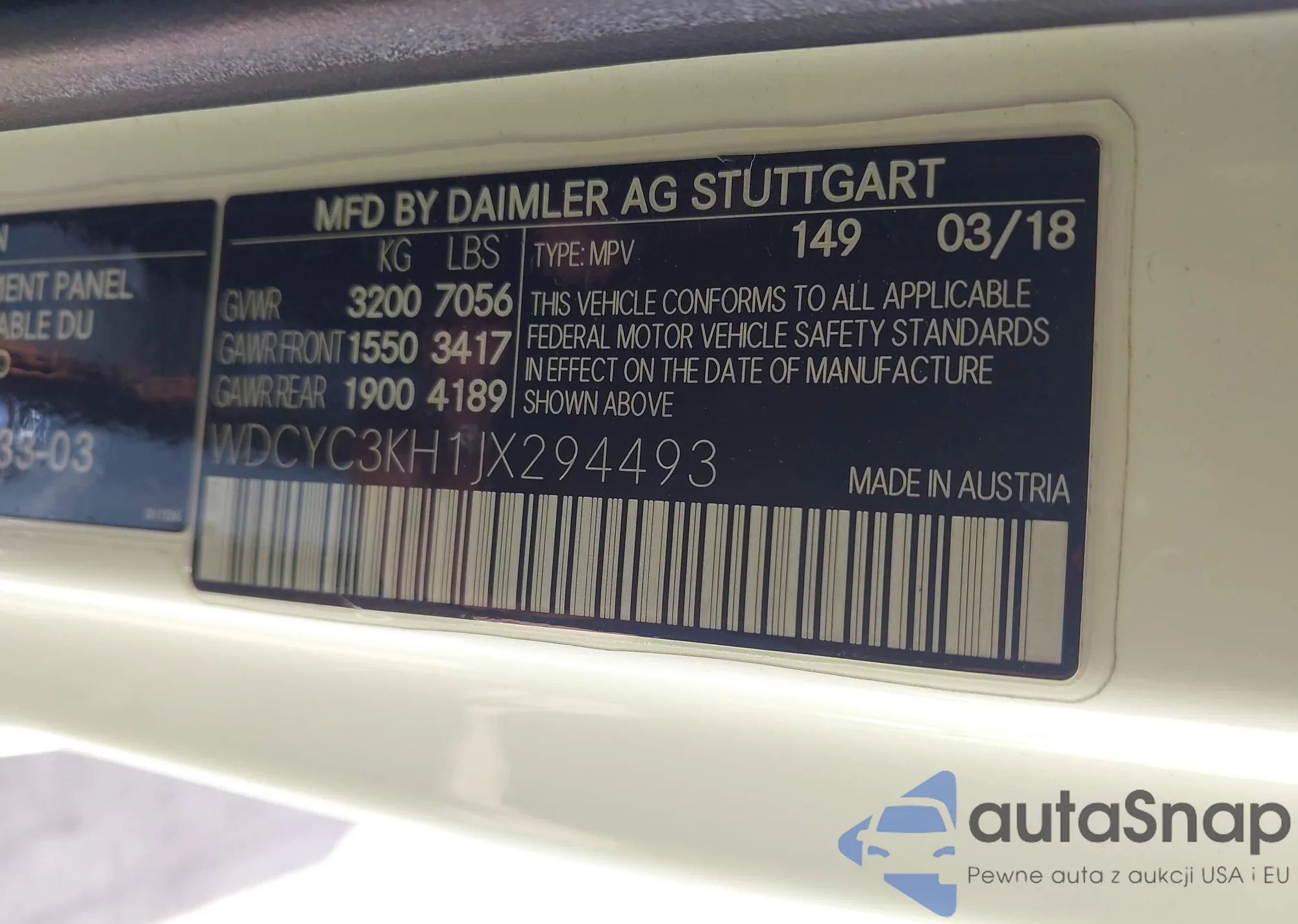 • VIN WDCYC3KH1JX294493