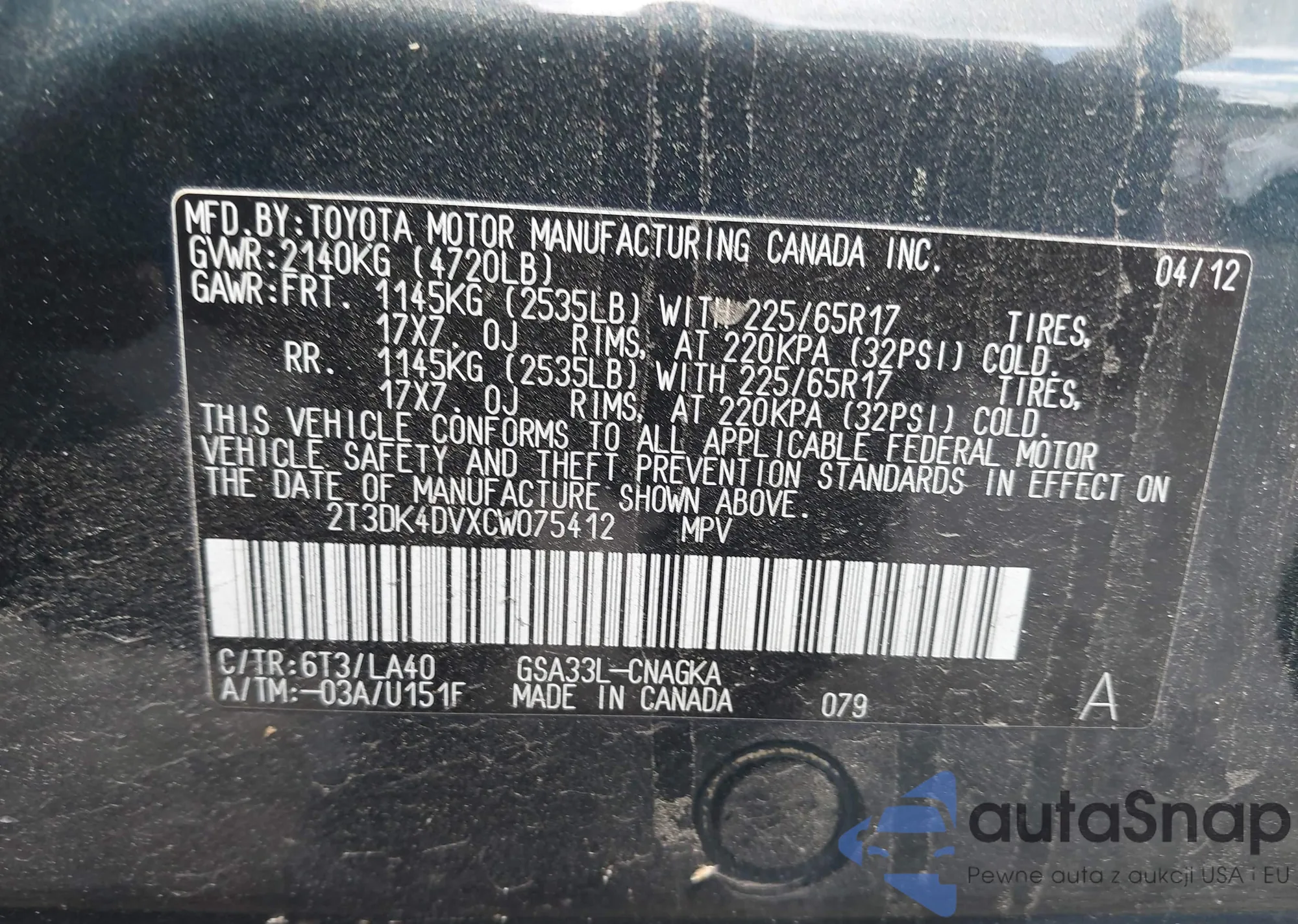 LOT: 42136068 VIN: 5YFBU4EE5DP148326