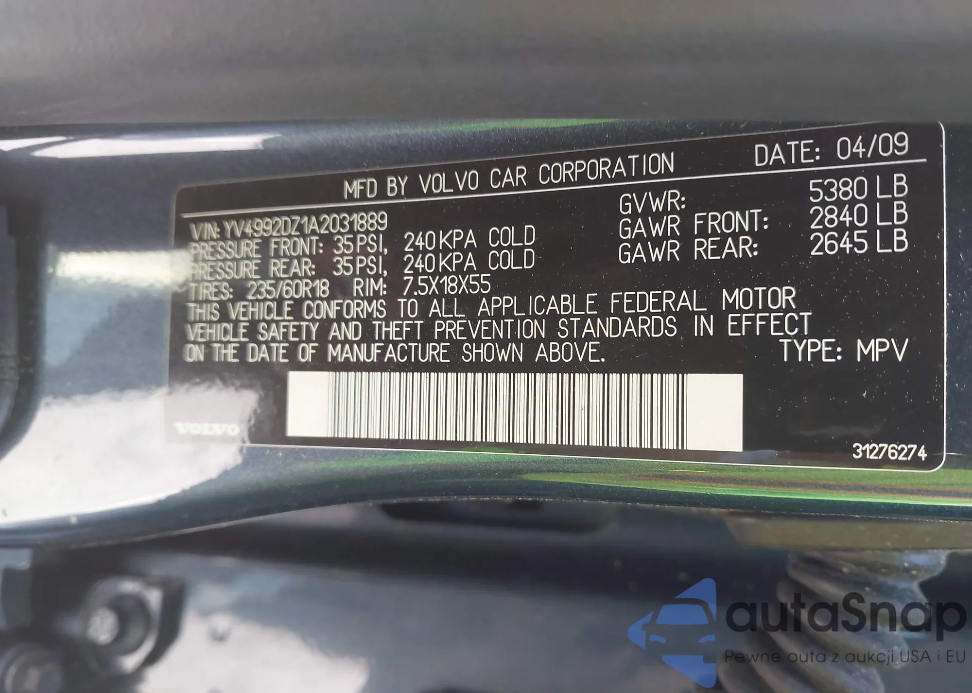 LOT: 42238845 VIN: WP0BB2A99GS136573