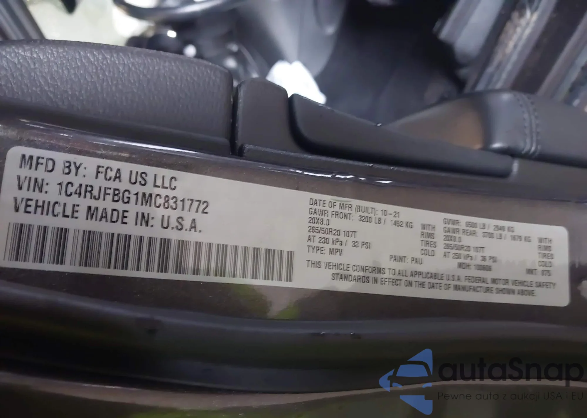 • VIN 1C4RJFBG1MC831772
