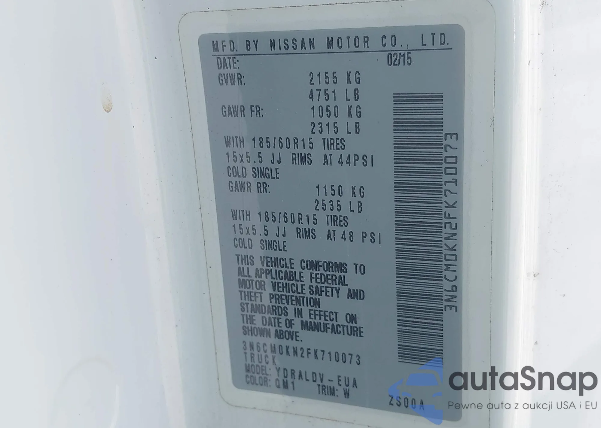 LOT: 42267598 VIN: 3N6CM0KN2FK710073