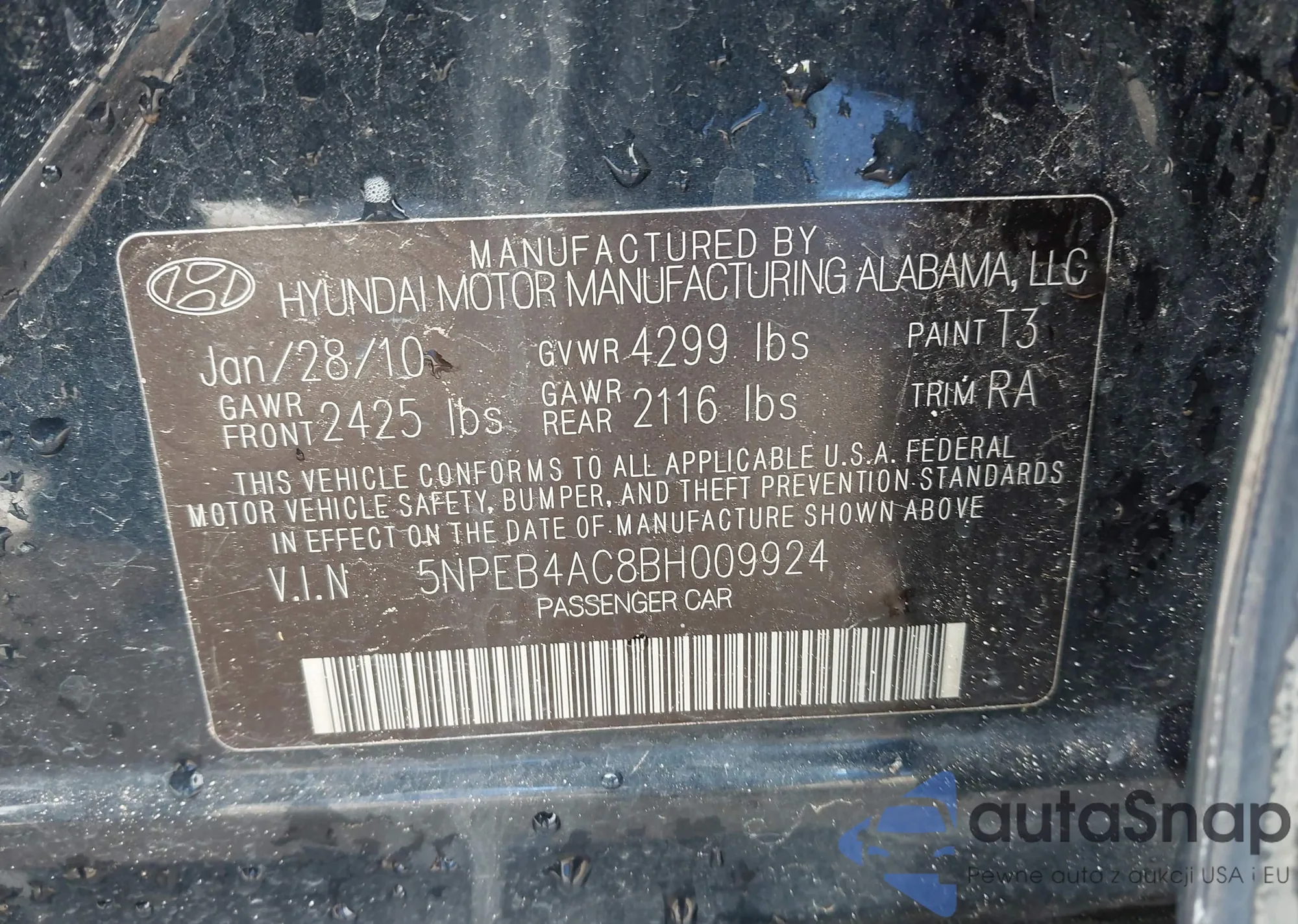 • VIN 5NPEB4AC8BH009924