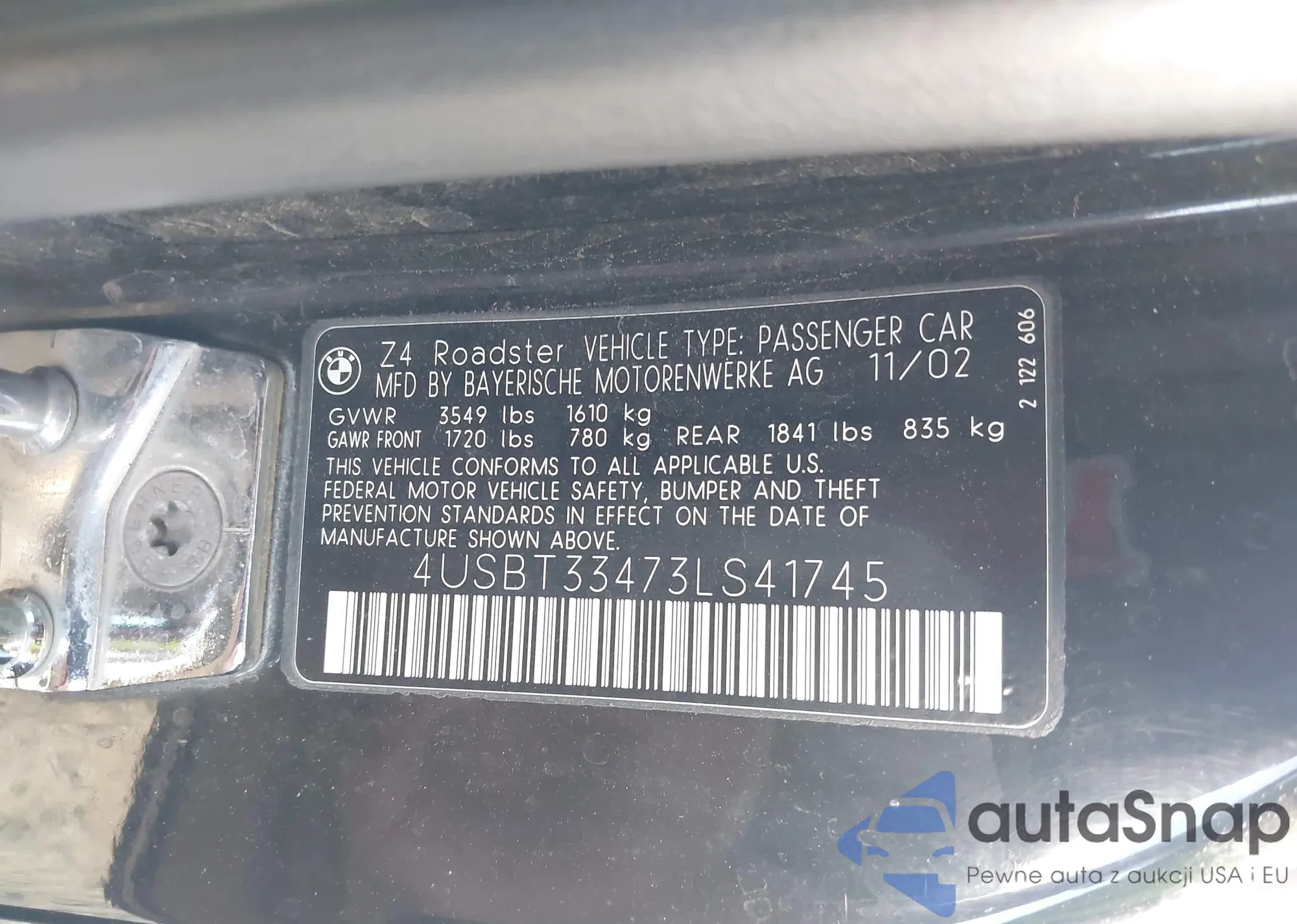 LOT: 42191204 VIN: WP0CB29887U731046