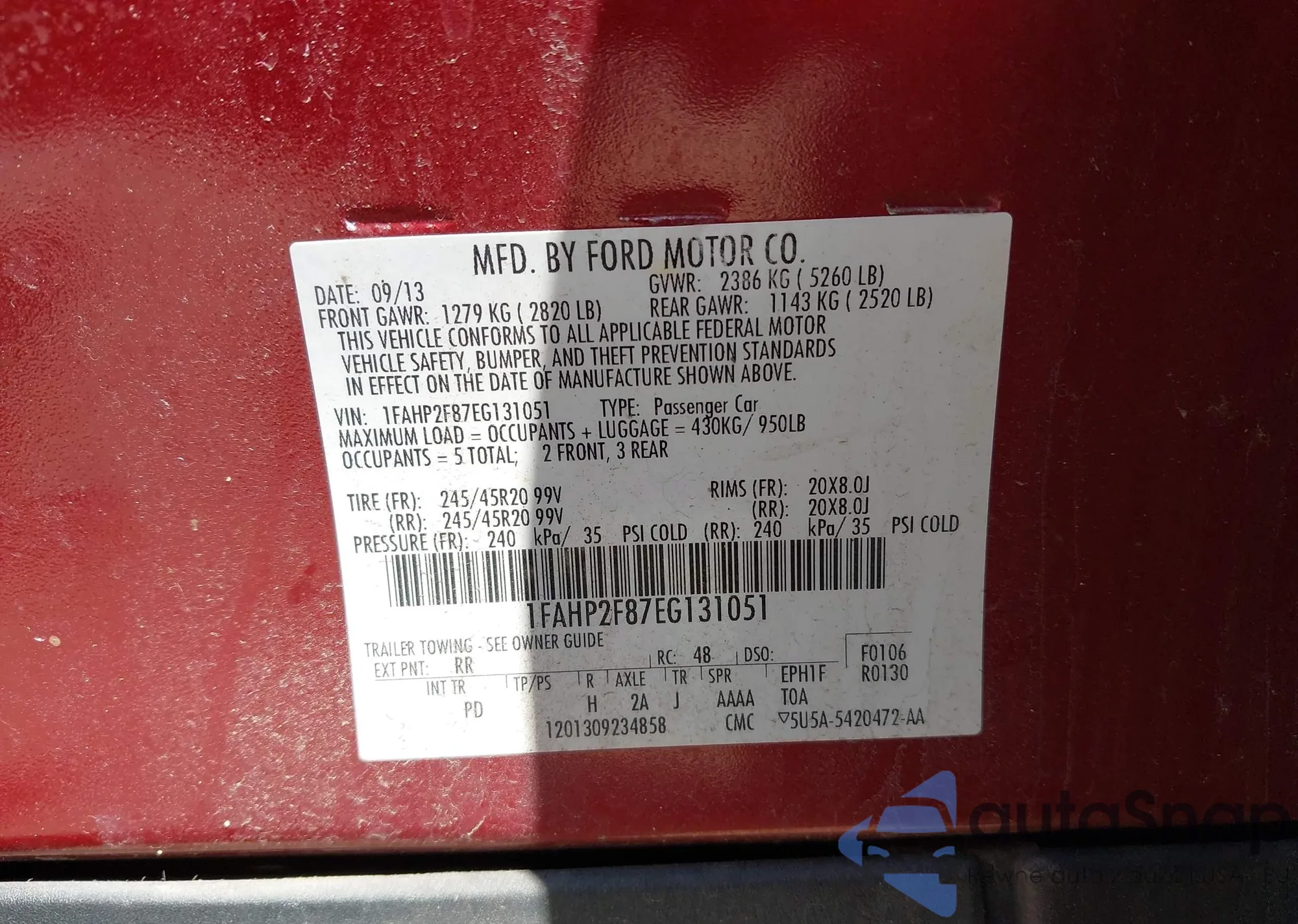 LOT: 42233899 VIN: KNAFK4A61E5139611