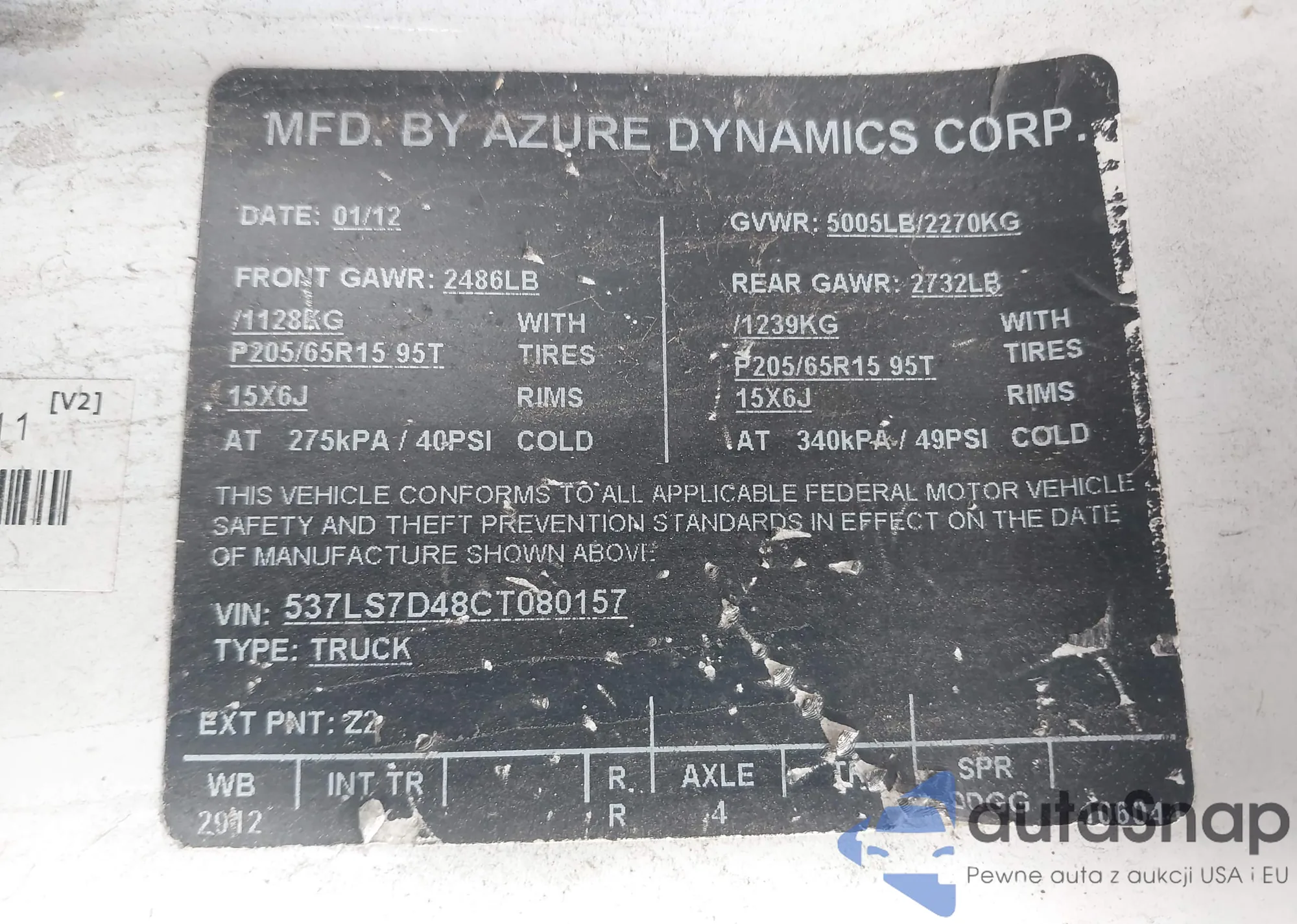 • VIN 537LS7D48CT080157