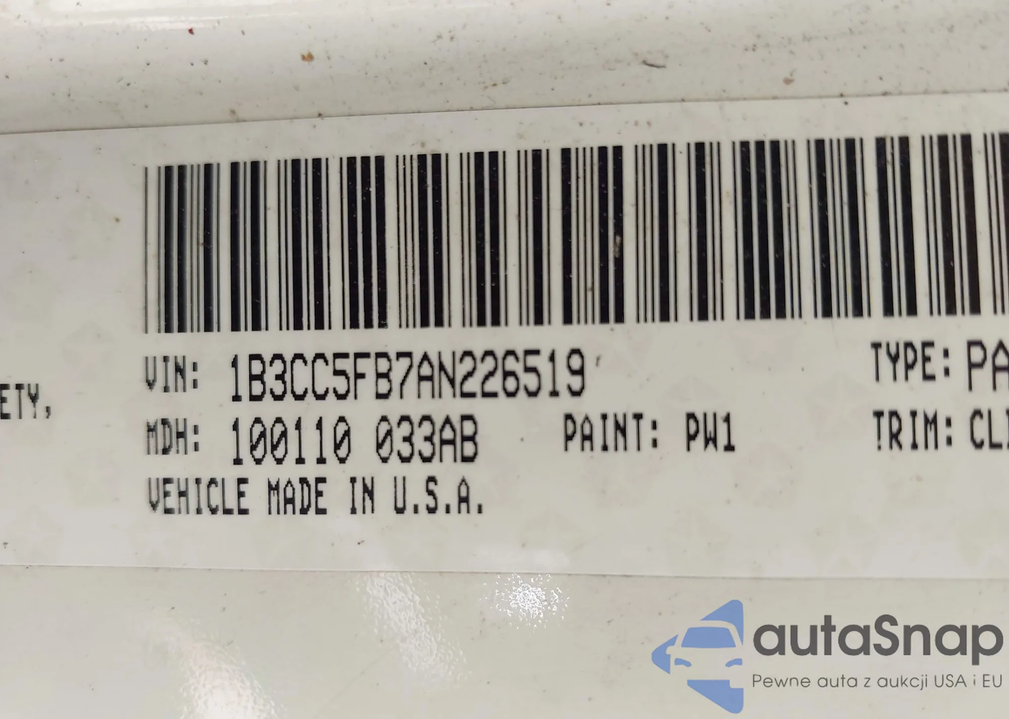 LOT: 42289306 VIN: 1B3CC5FB7AN226519