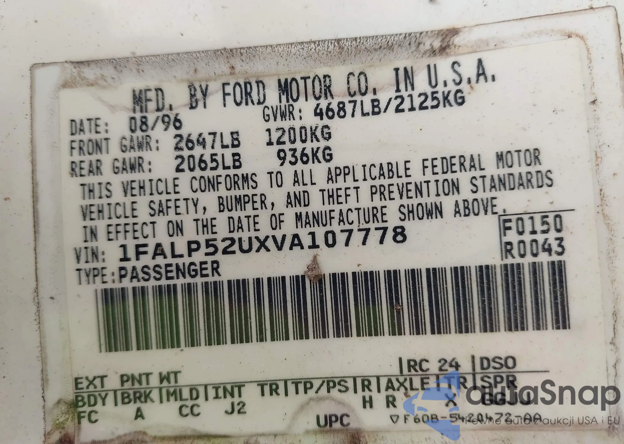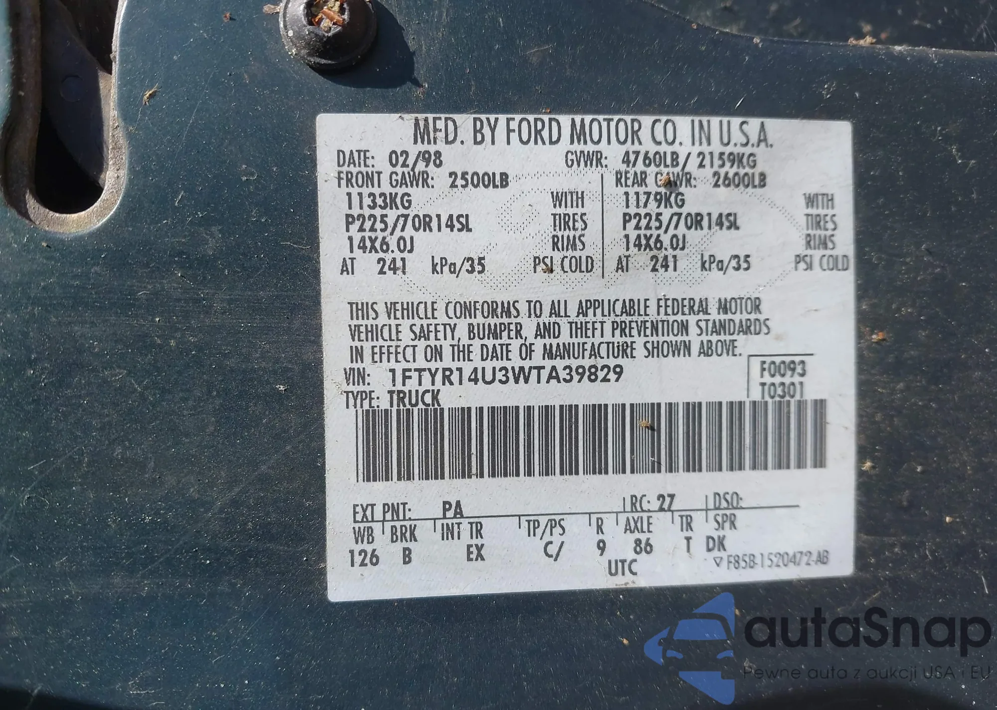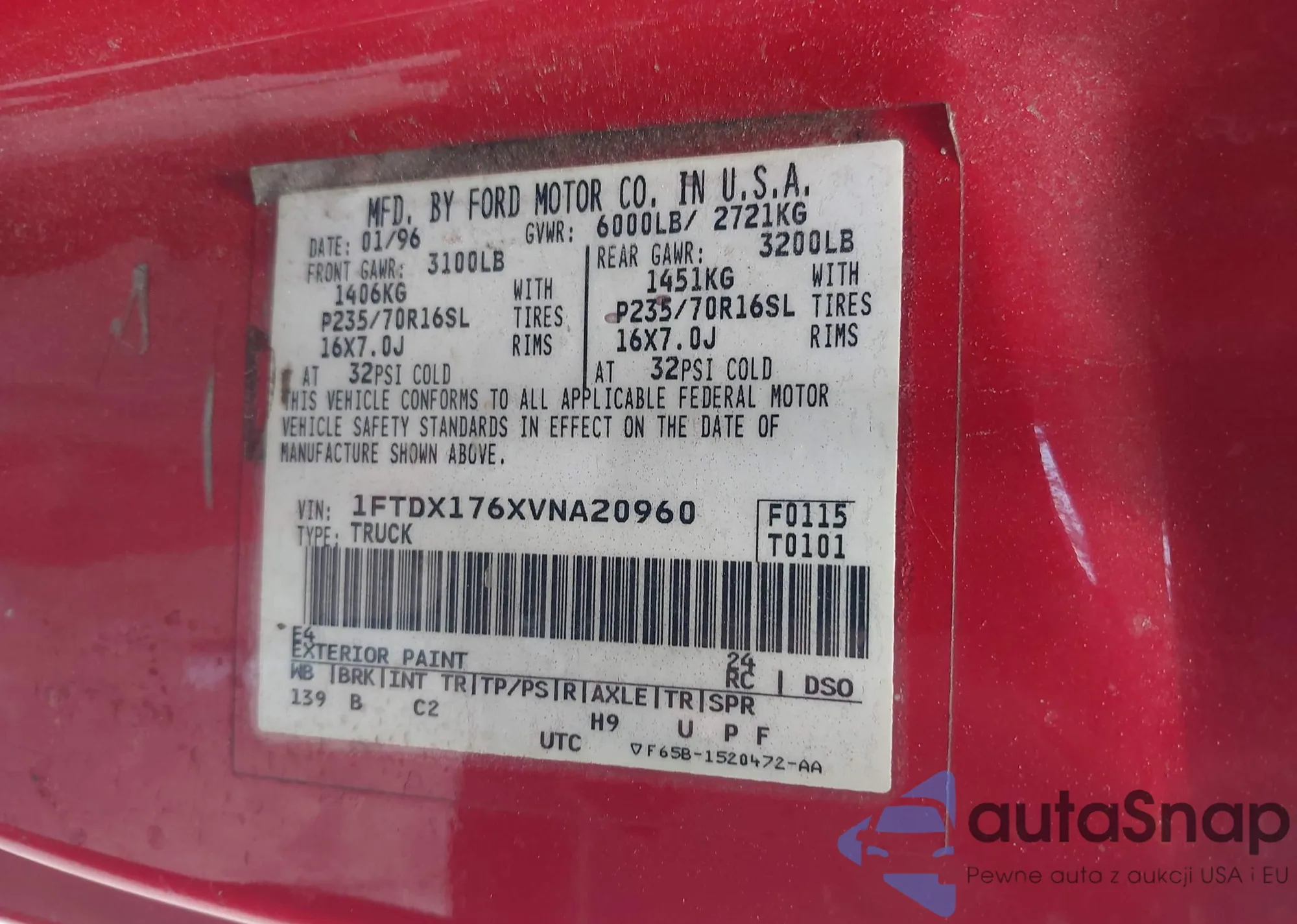 • VIN 1FTDX176XVNA20960