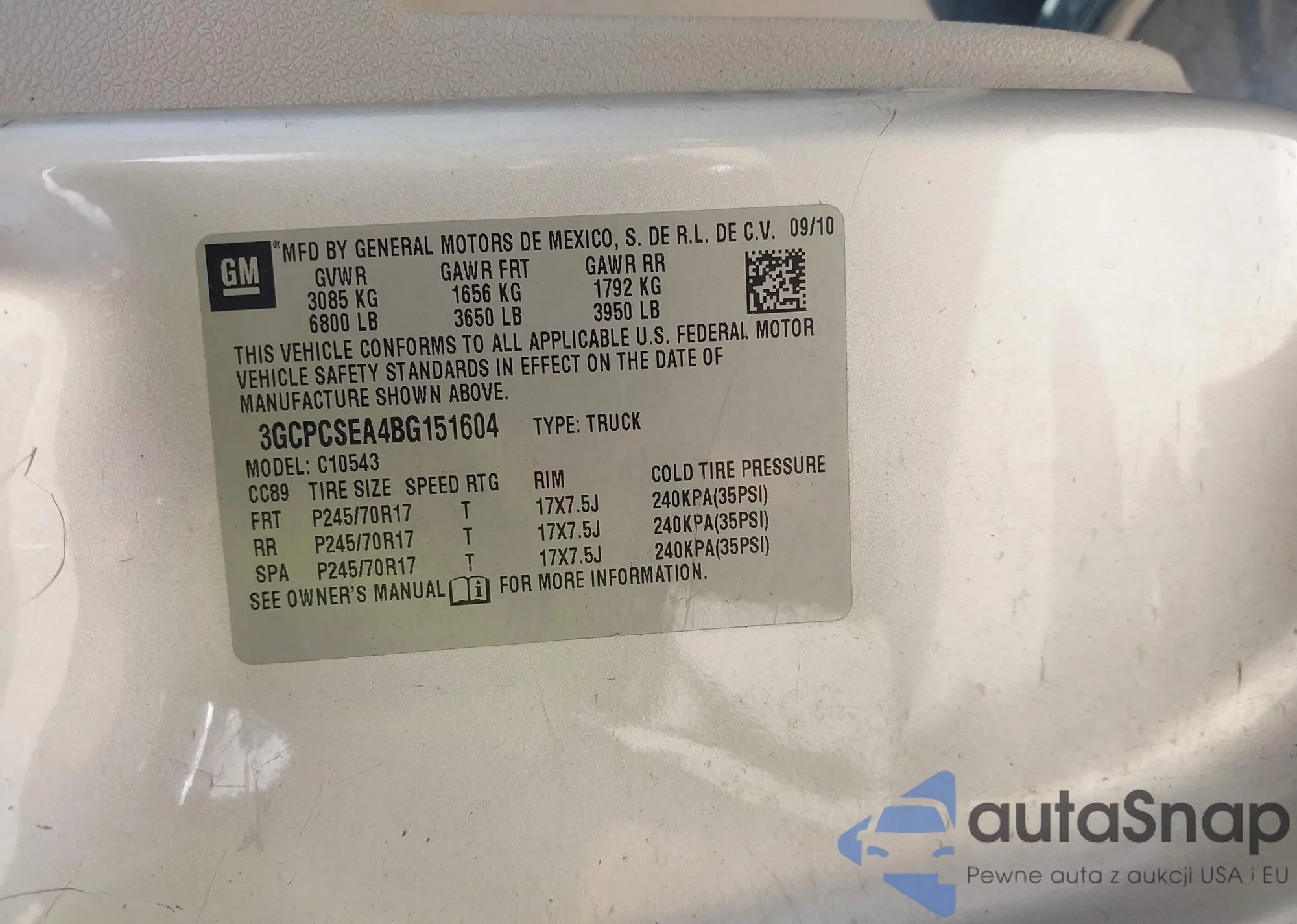 • VIN 3GCPCSEA4BG151604