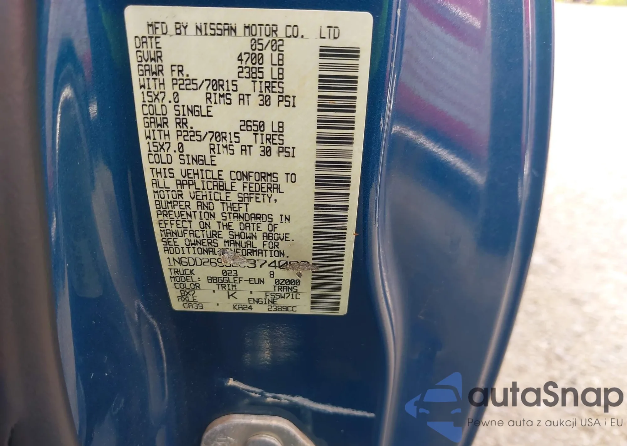 • VIN 1N6DD26S32C374093