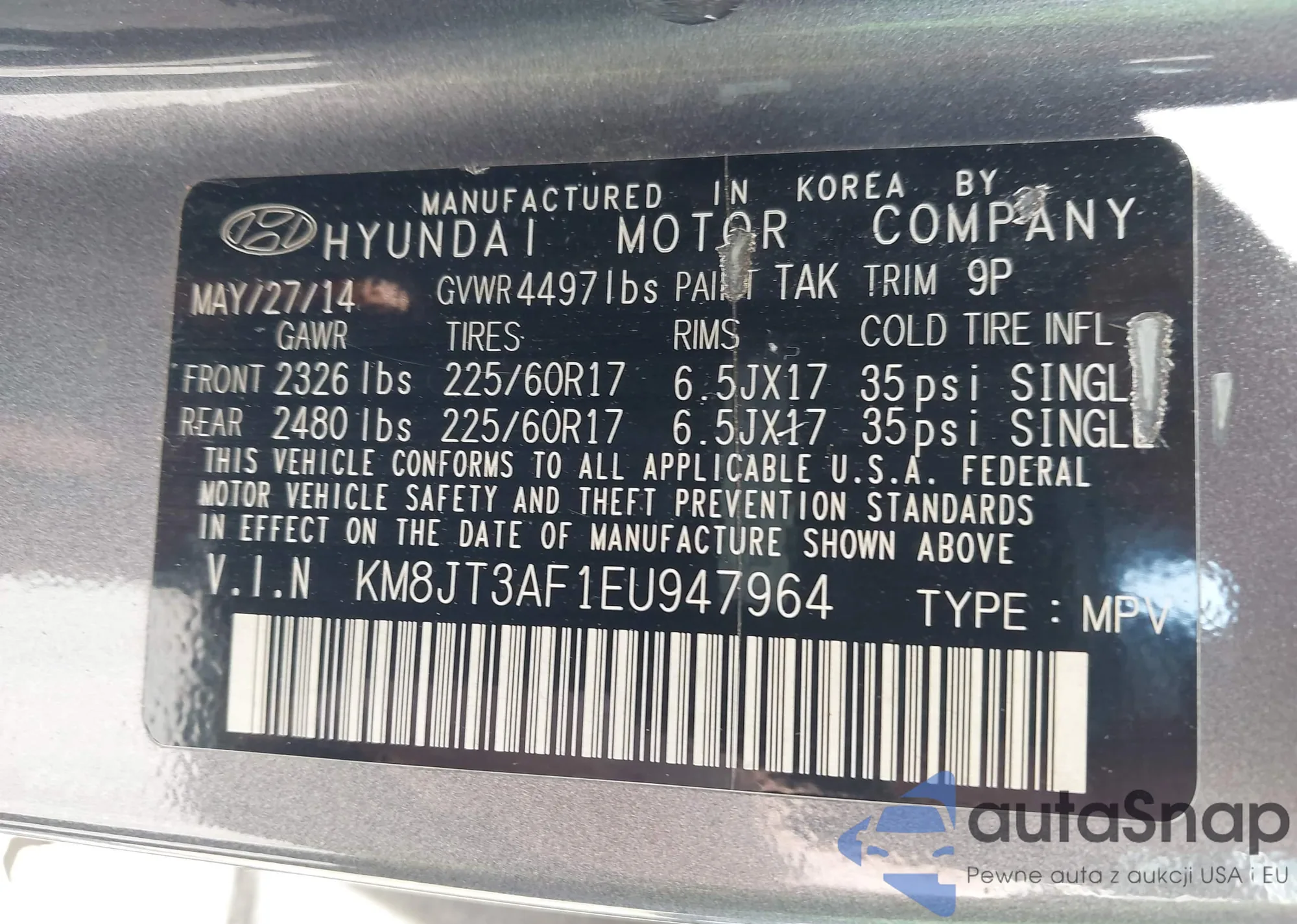 • VIN KM8JT3AF1EU947964