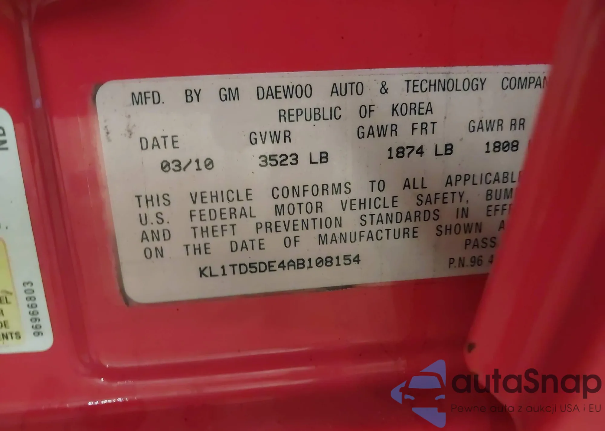 • VIN KL1TD5DE4AB108154