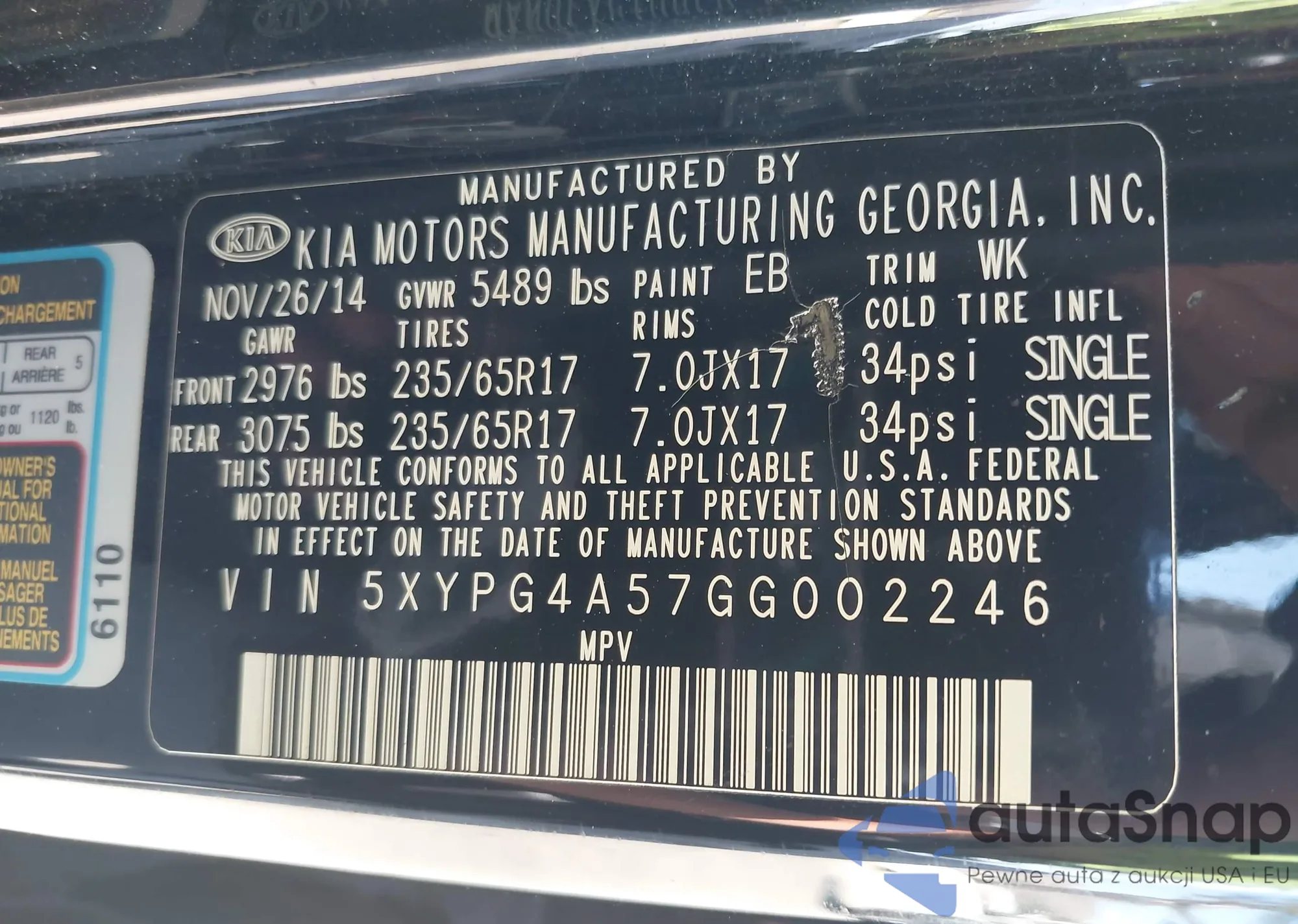 LOT: 42328133 VIN: 5XYPG4A57GG002246