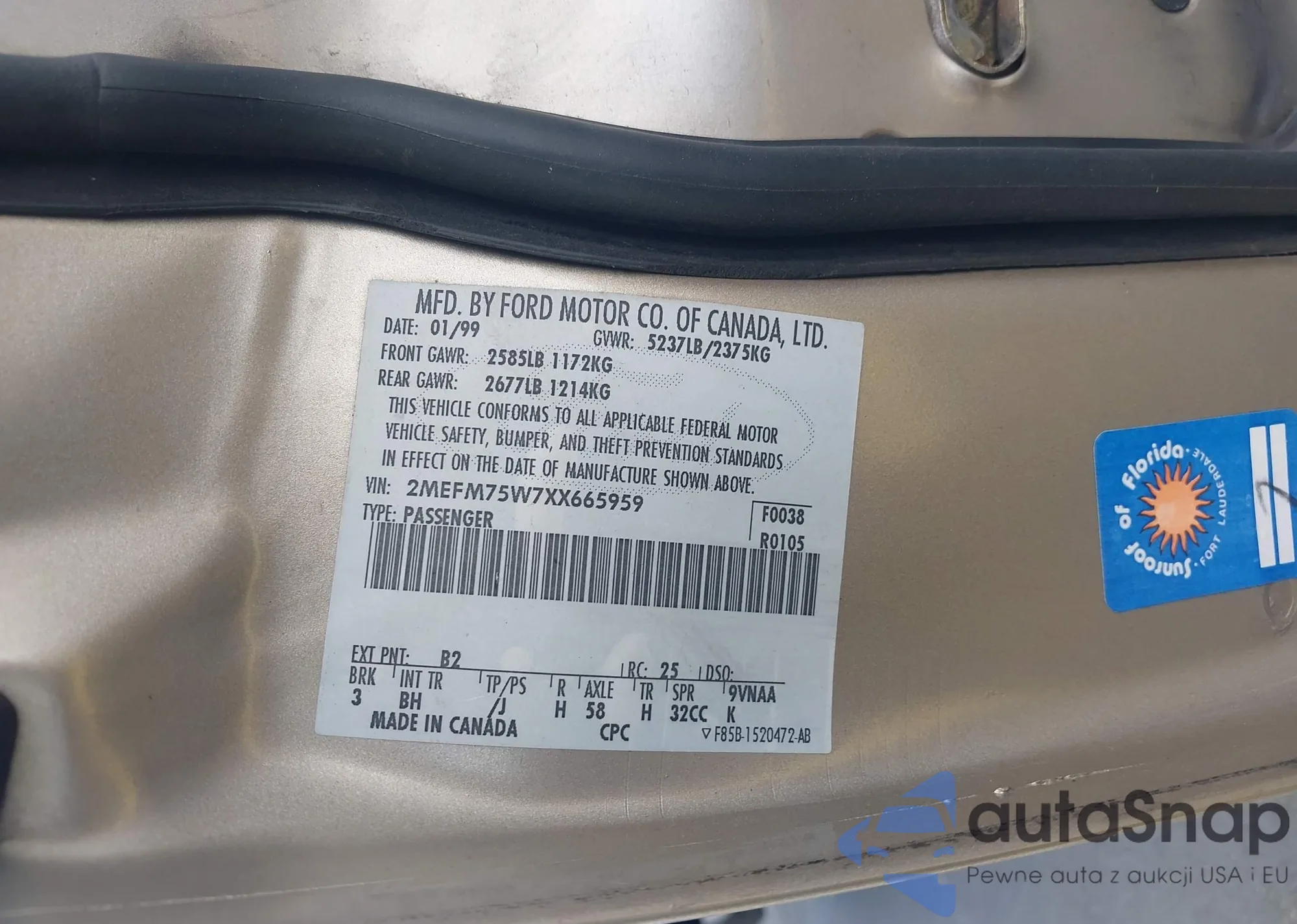 LOT: 42334169 VIN: 2MEFM74W4WX666650