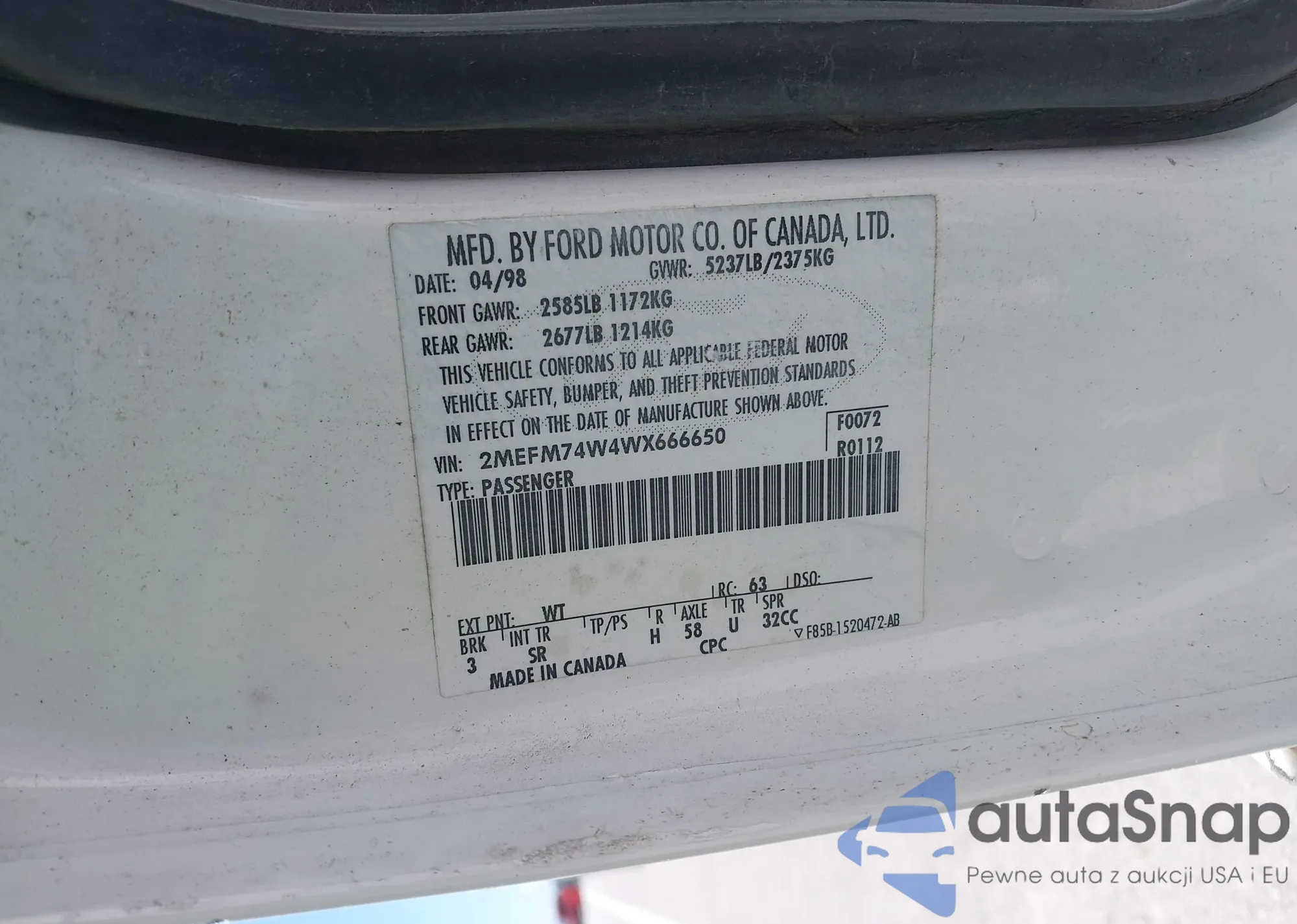 • VIN 2MEFM74W4WX666650