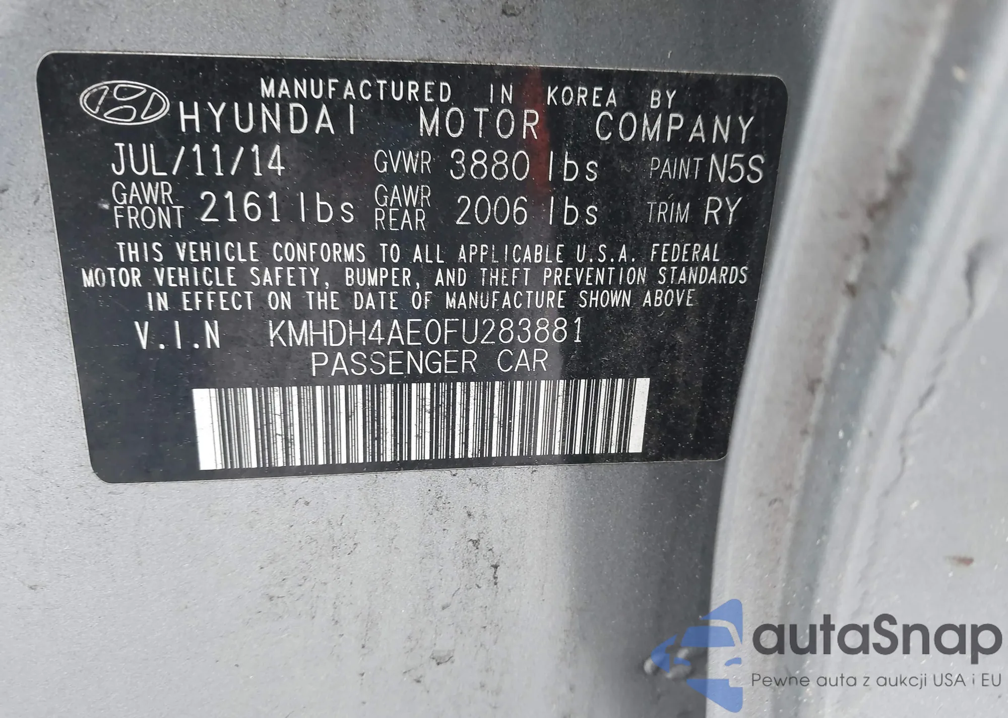 • VIN KMHDH4AE0FU283881
