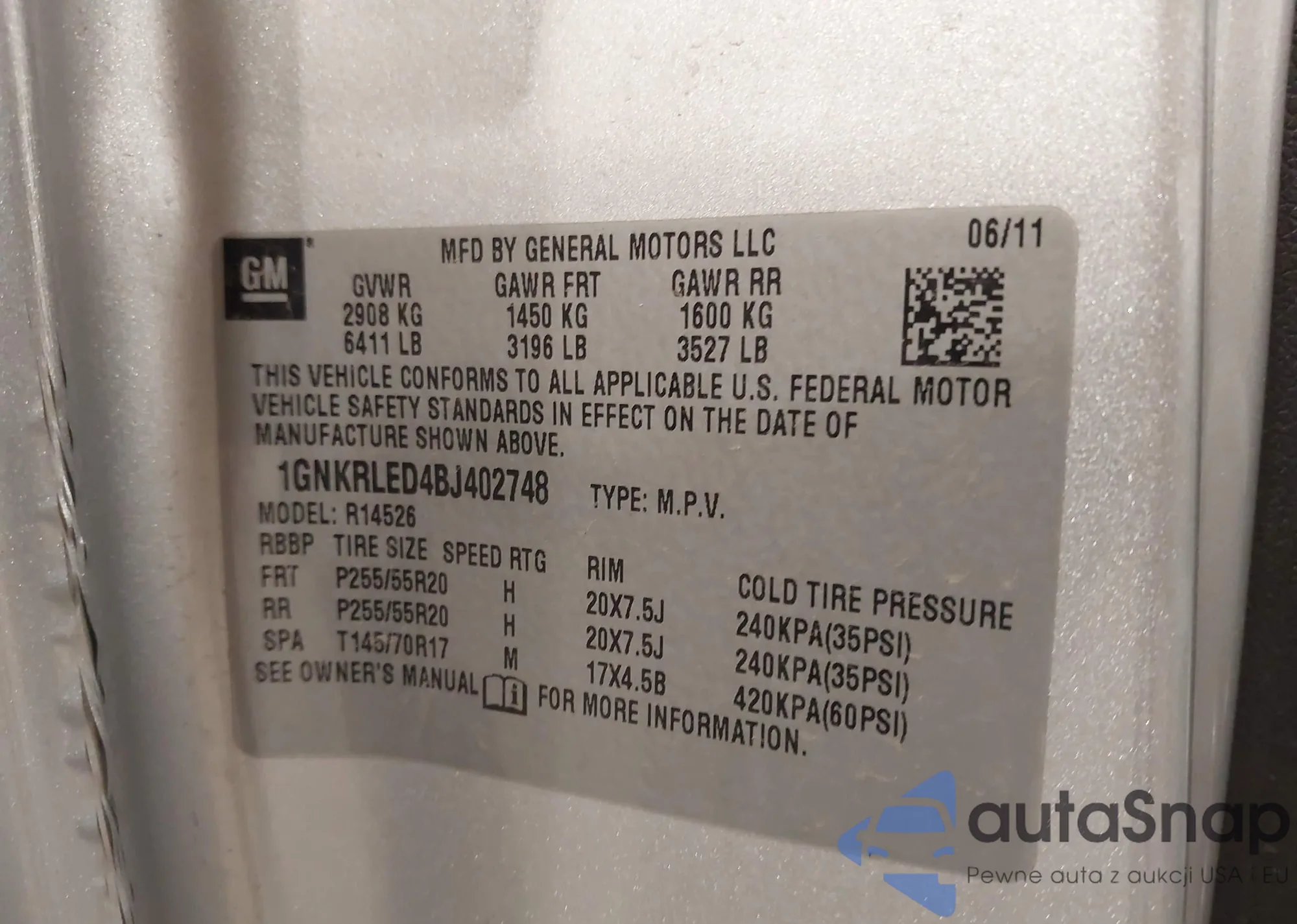 • VIN 1GNKRLED4BJ402748