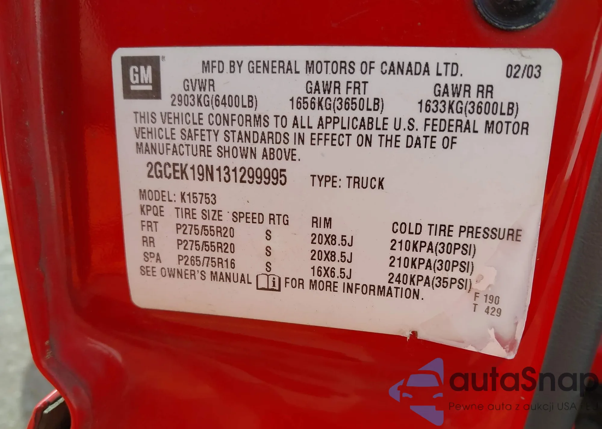 • VIN 2GCEK19N131299995
