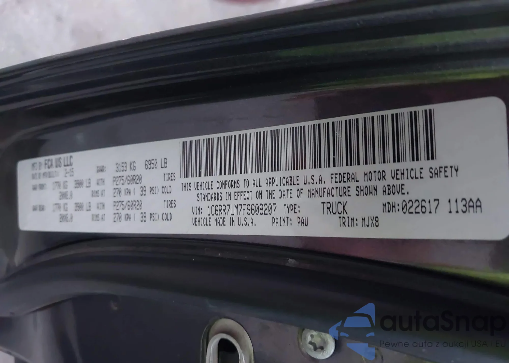 • VIN 1C6RR7LM7FS609207