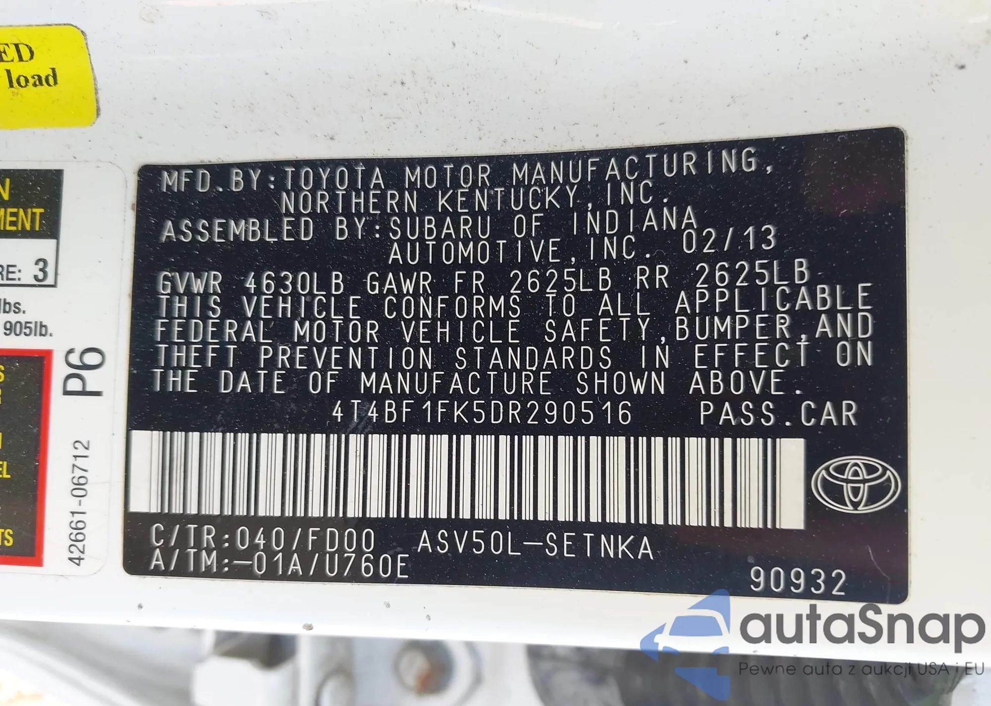 • VIN 4T1BF1FK7GU176421