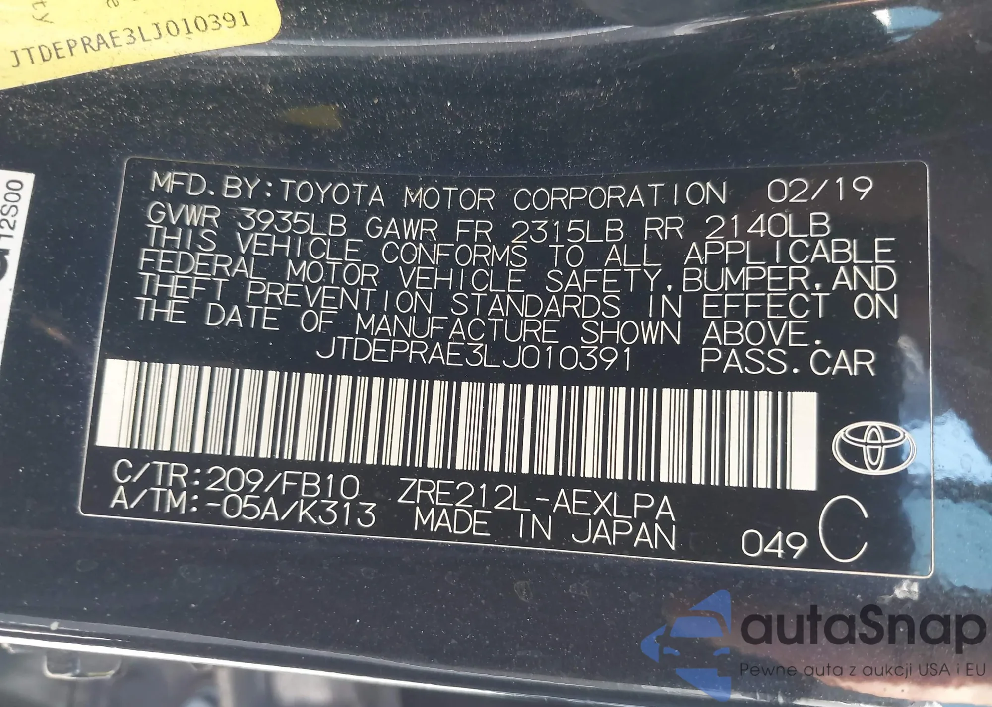 • VIN JTDEPRAE3LJ010391