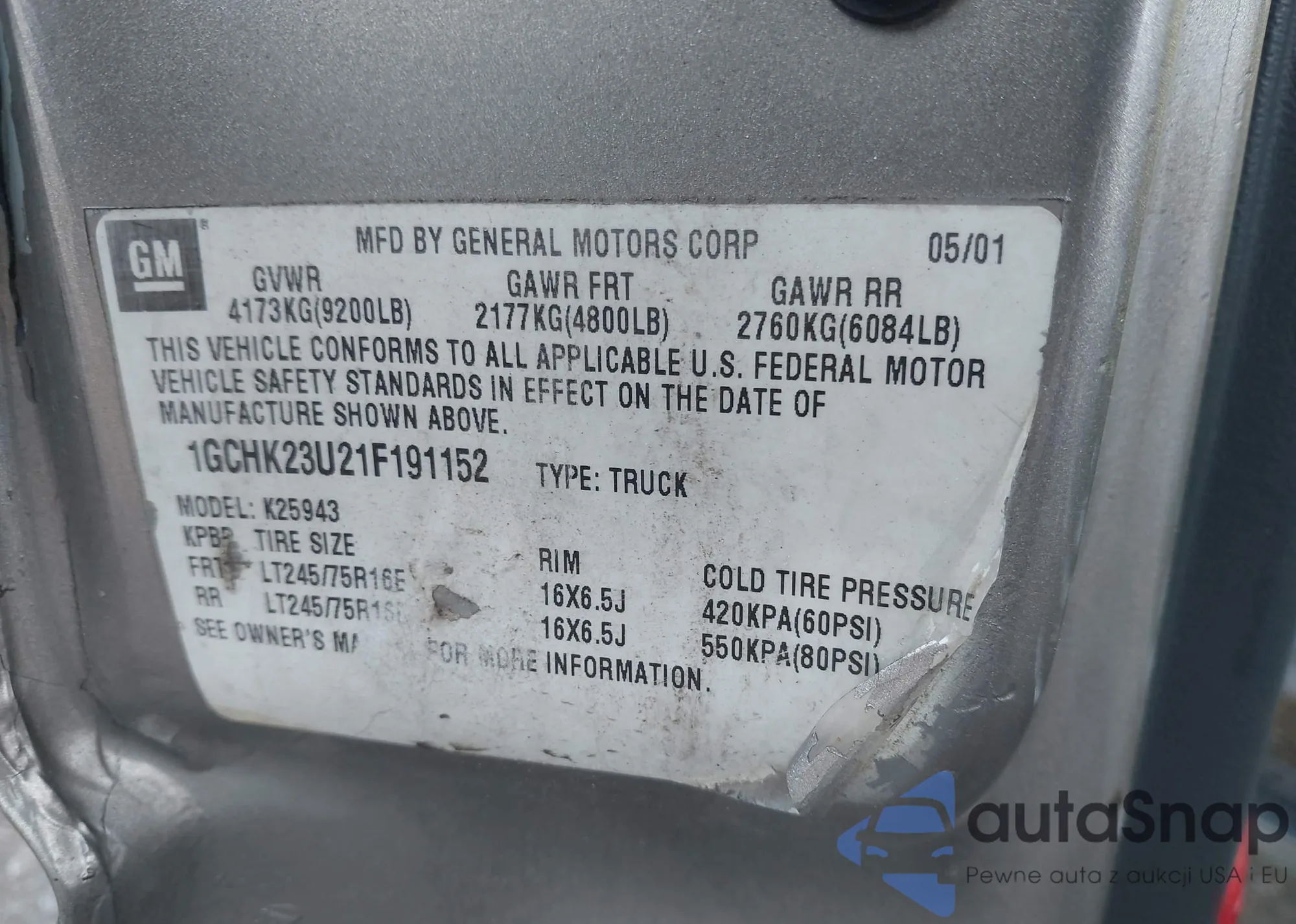• VIN 1GCHK23U21F191152
