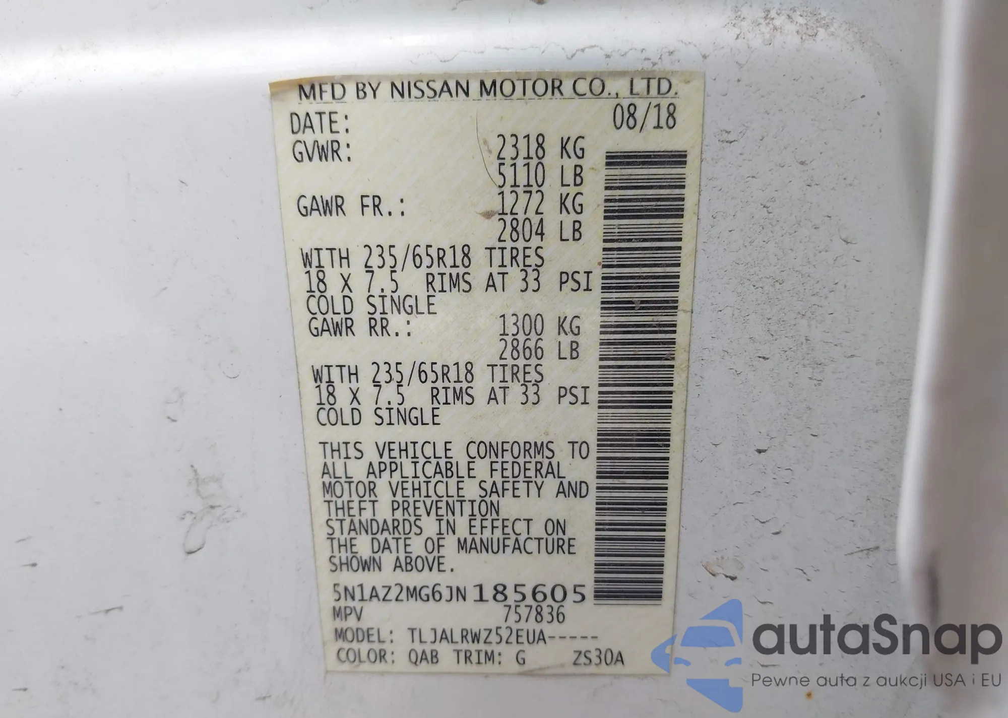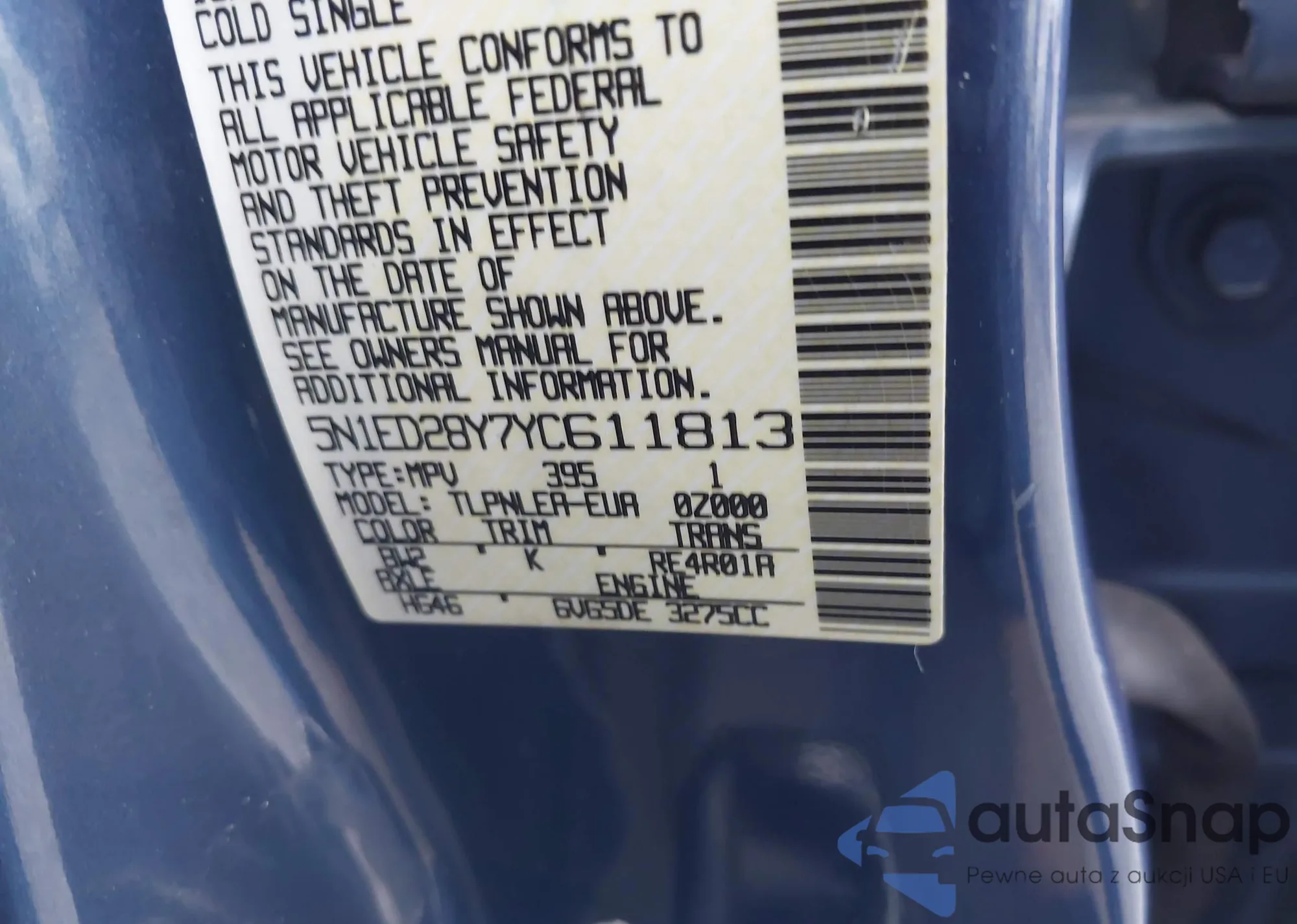 • VIN 5N1ED28Y7YC611813