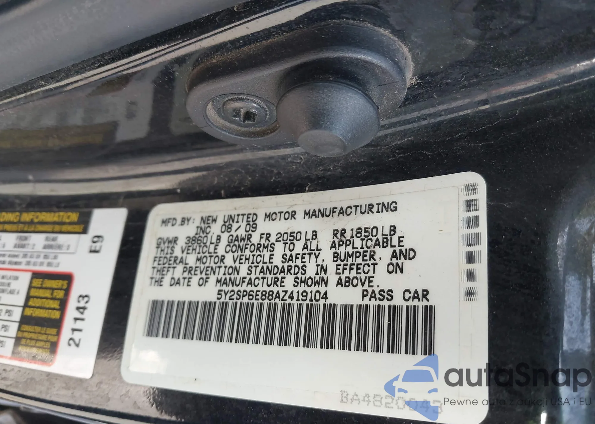 LOT: 42159668 VIN: 1HGFA16837L030873
