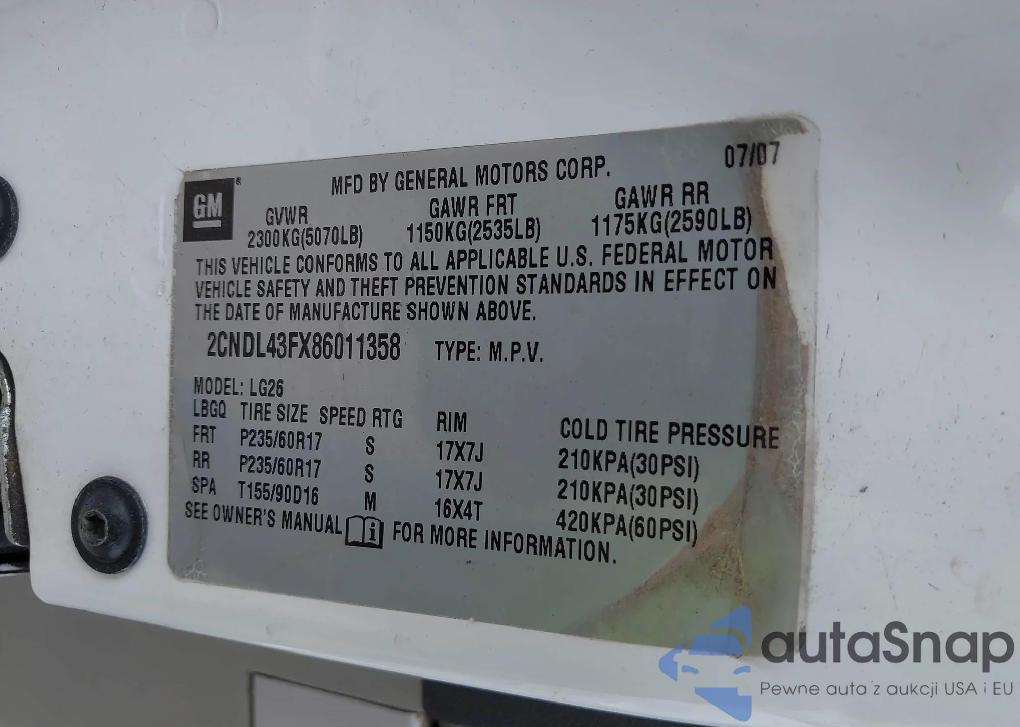 • VIN 2CNDL43FX86011358