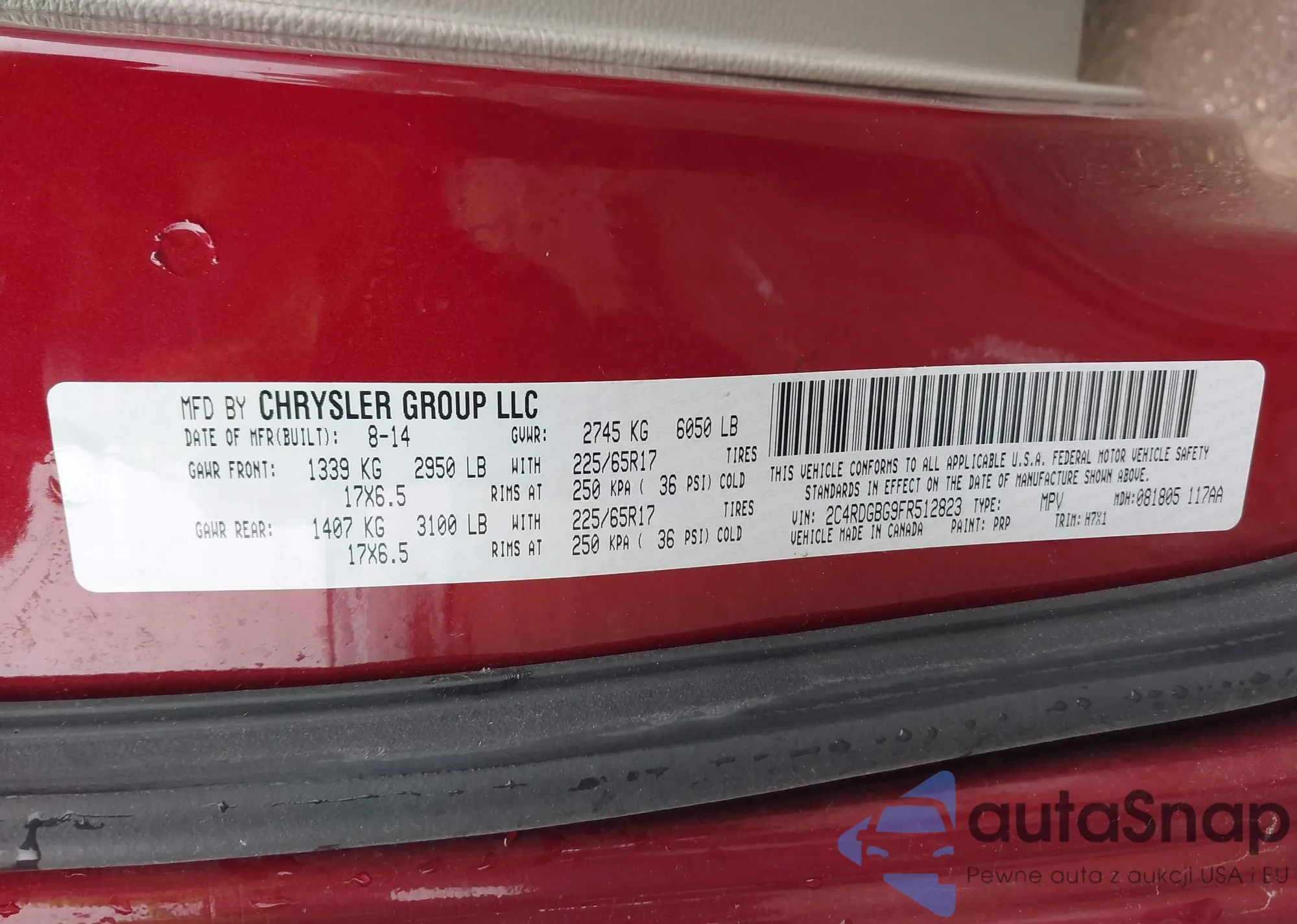 • VIN 2C4RDGBG9FR512823