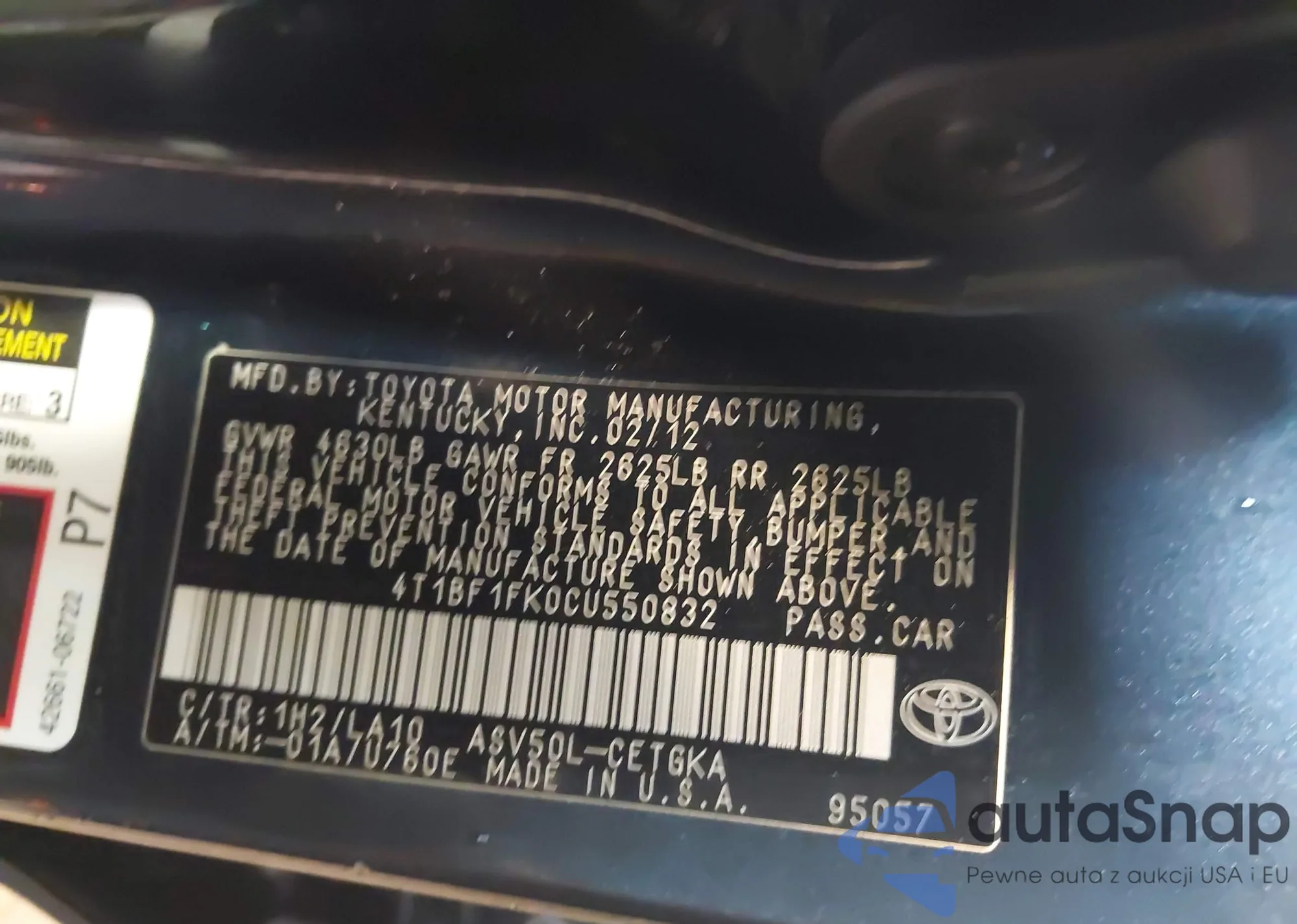• VIN 4T1BF1FK6CU114499