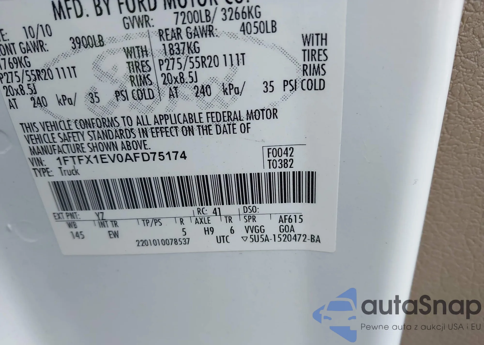 • VIN 1FTFX1EV0AFD75174