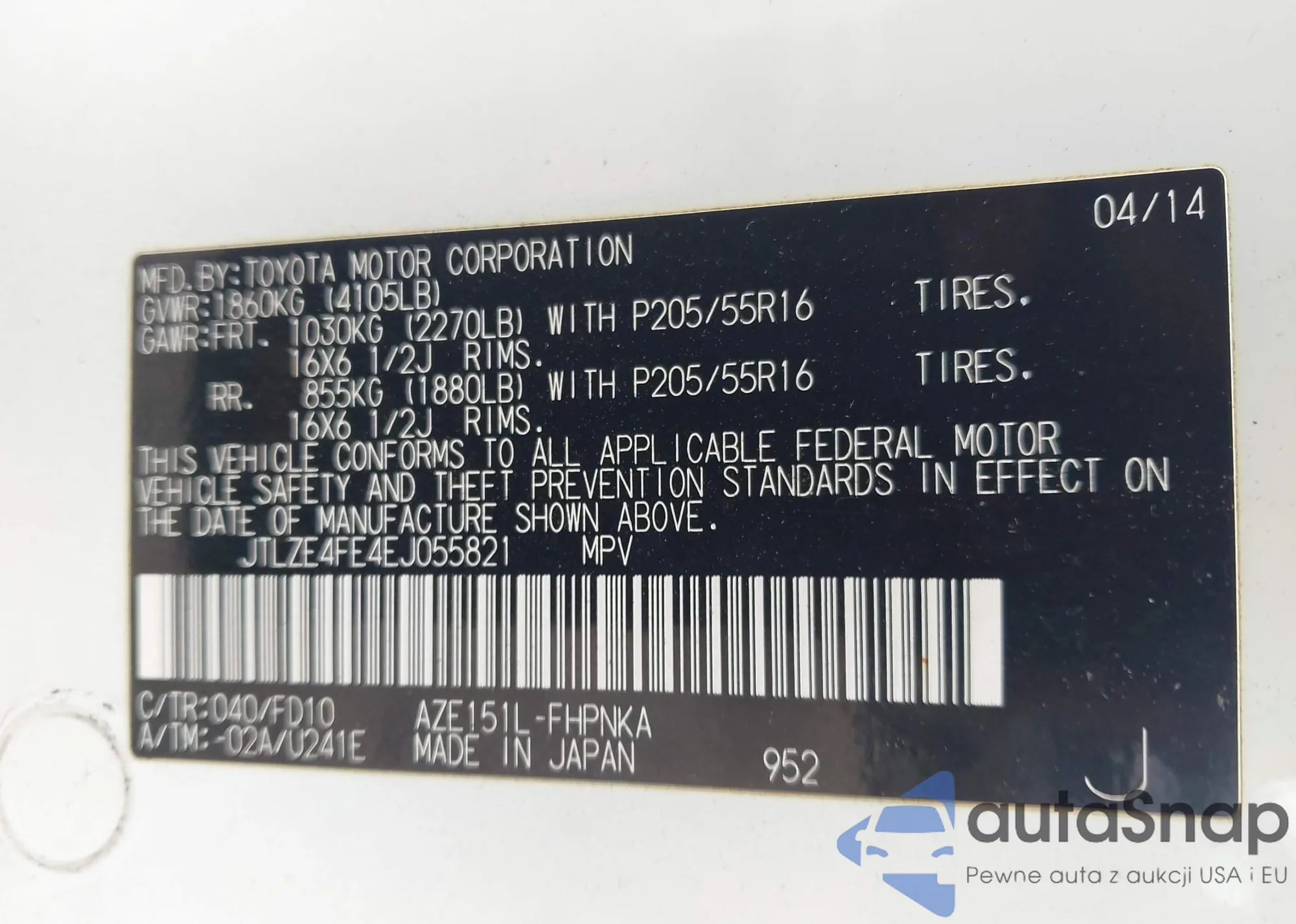 • VIN 5YFB4MDE7RP124702