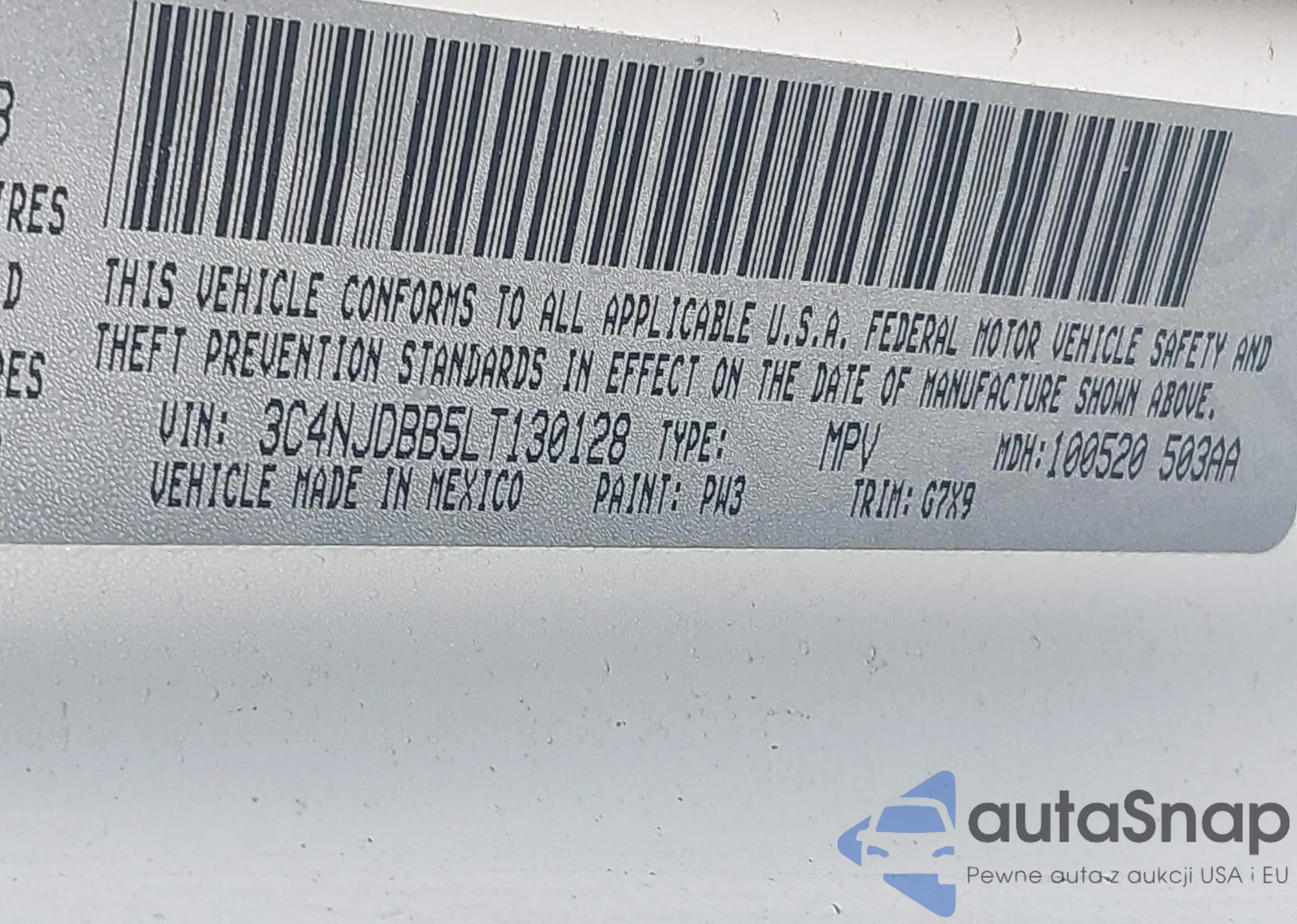 • VIN 3C4NJDBB5LT130128