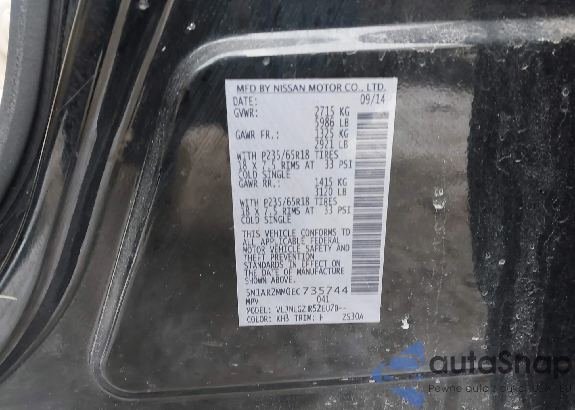 • VIN 5N1AR2MM0EC735744
