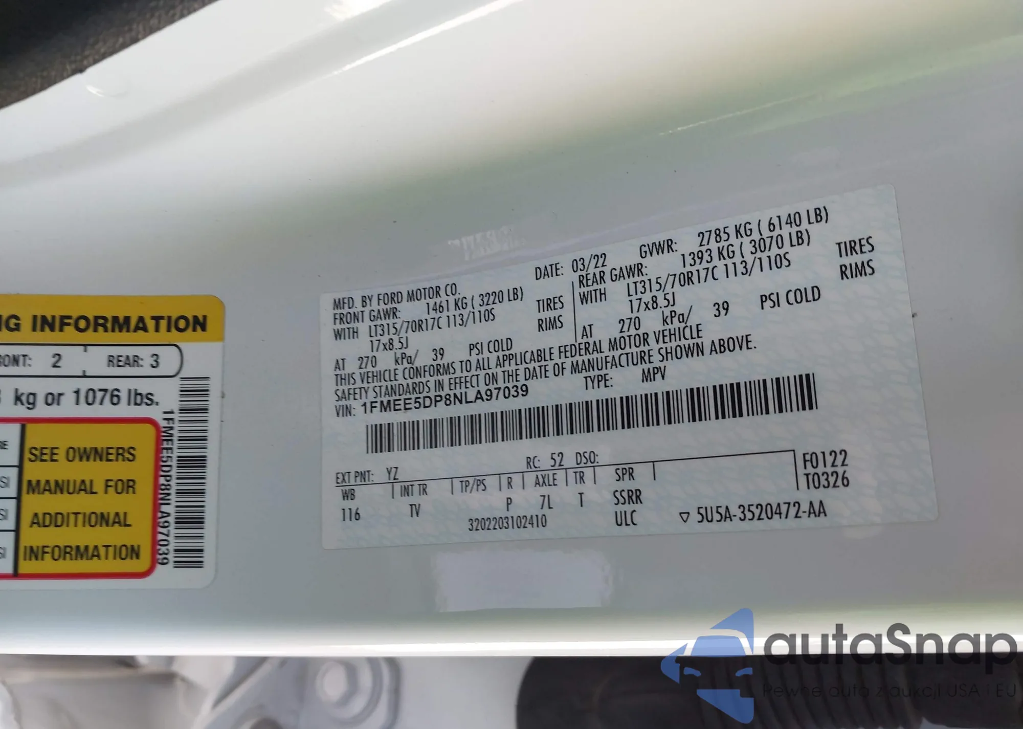 • VIN 1FMEE5DP8NLA97039