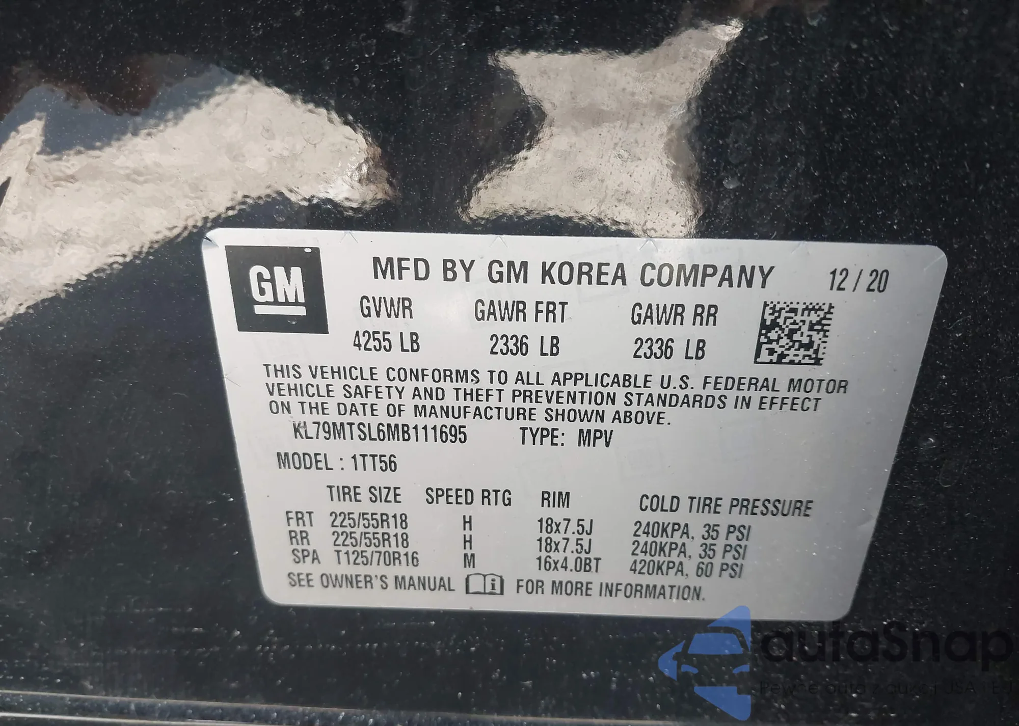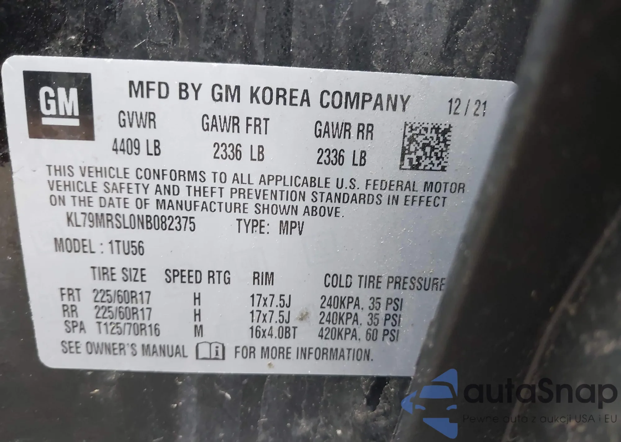 • VIN KL79MRSL0NB082375