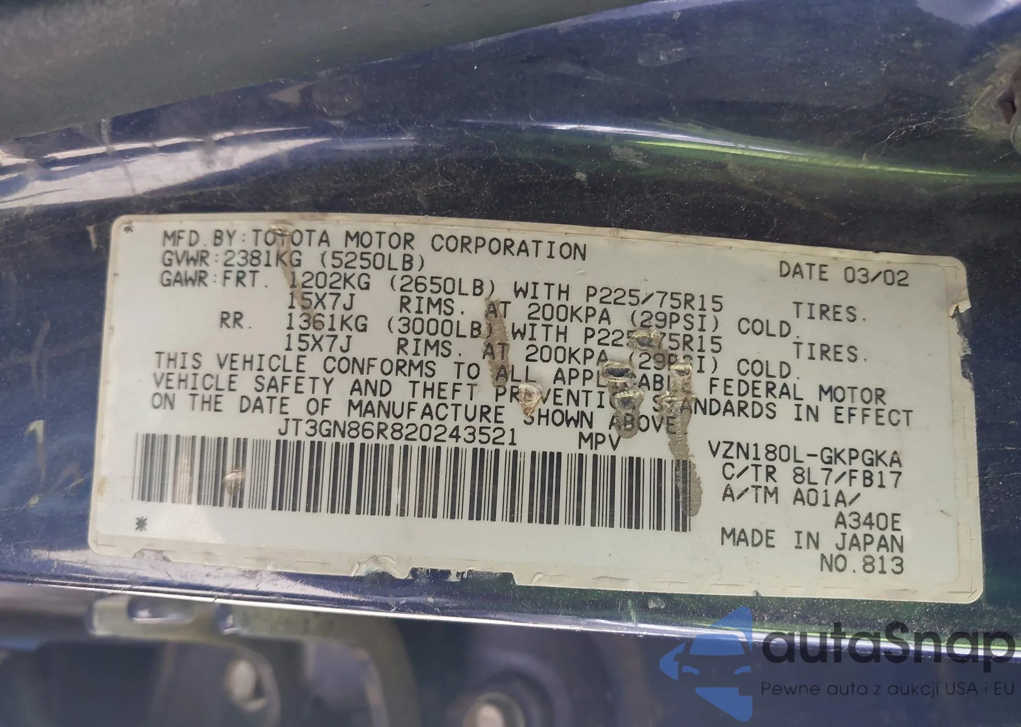 LOT: 42141252 VIN: JT3GN86R820243521
