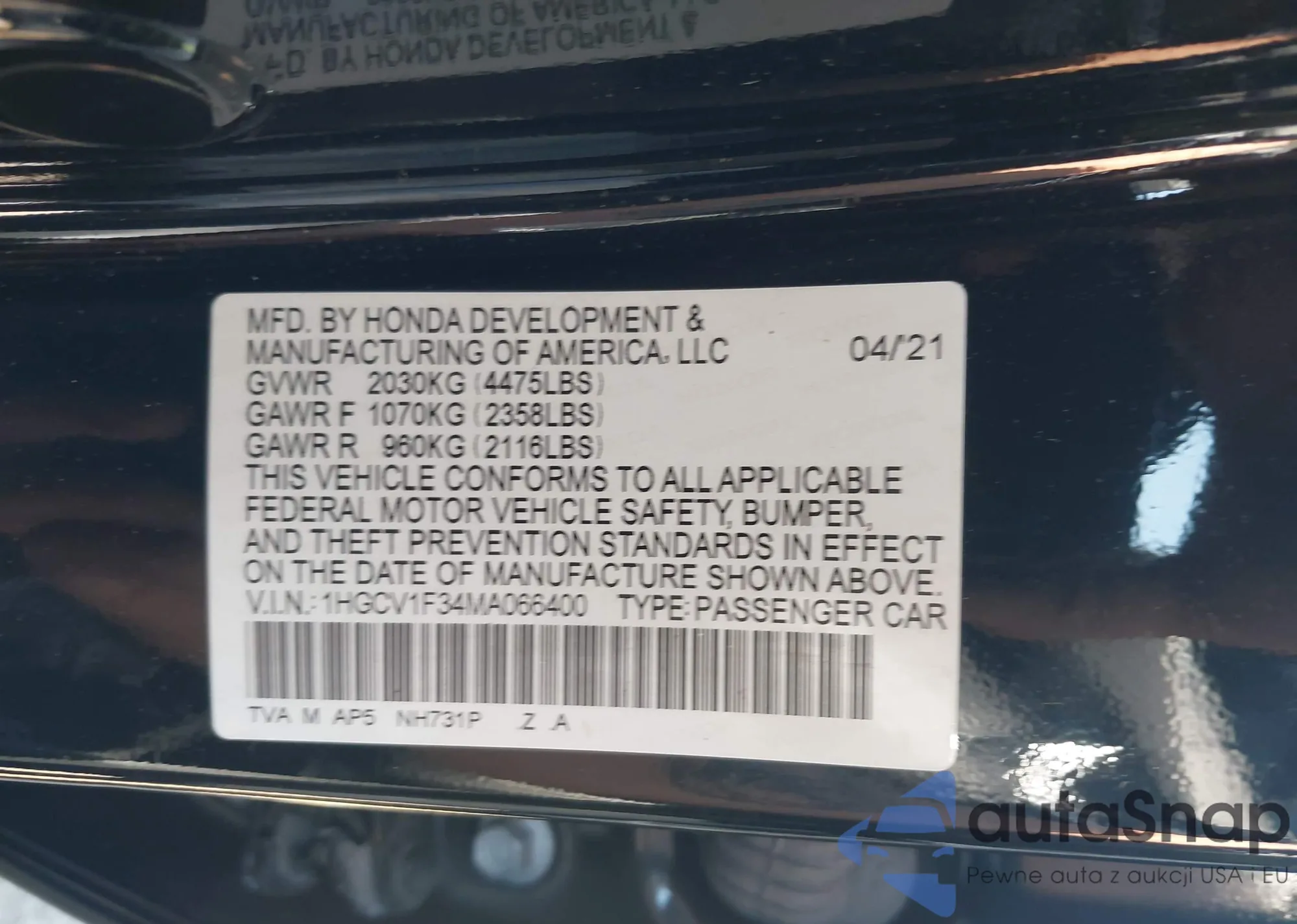 LOT: 42354072 VIN: 2HKYF18616H522986