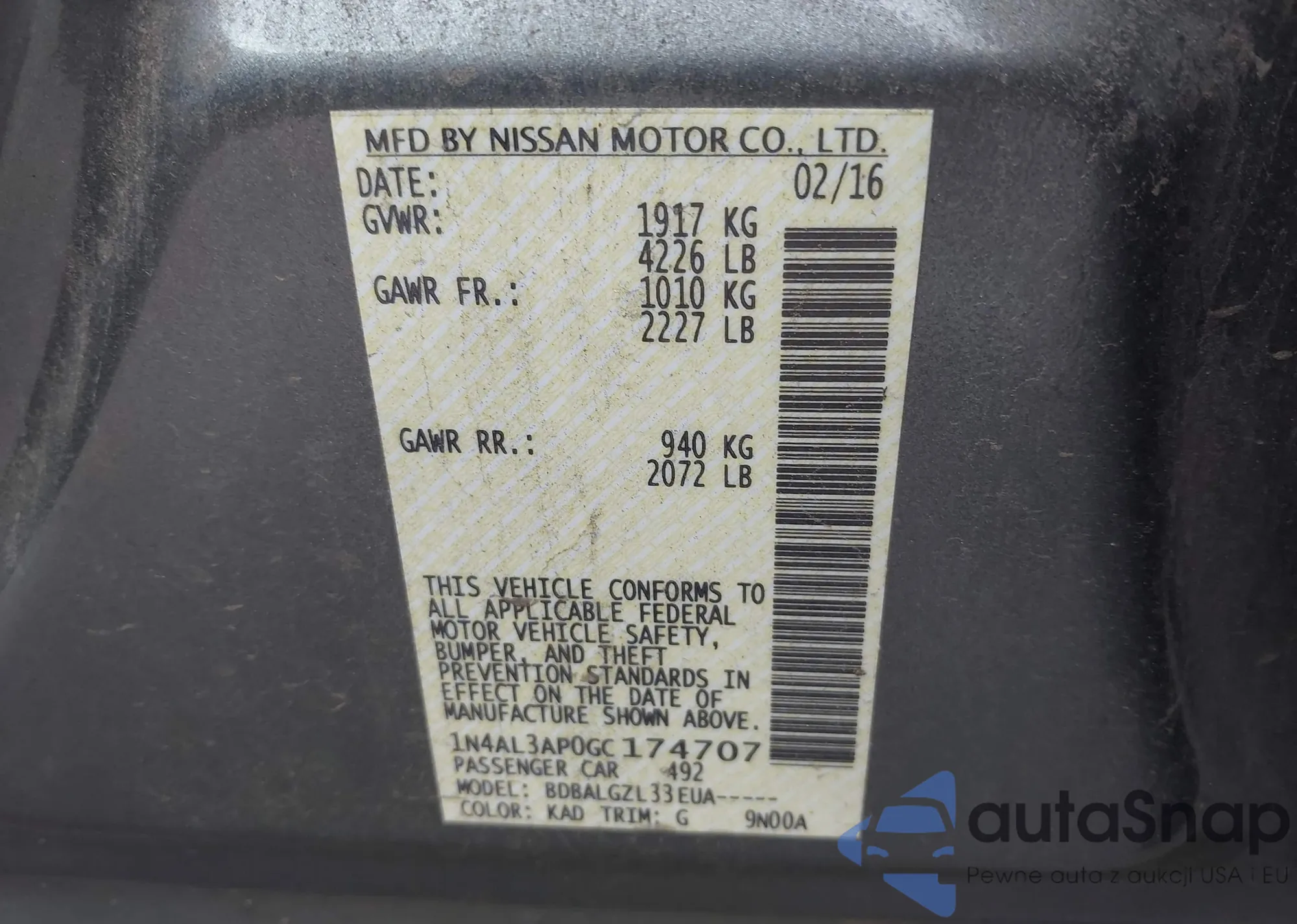 • VIN 1N4AL3AP0GC174707