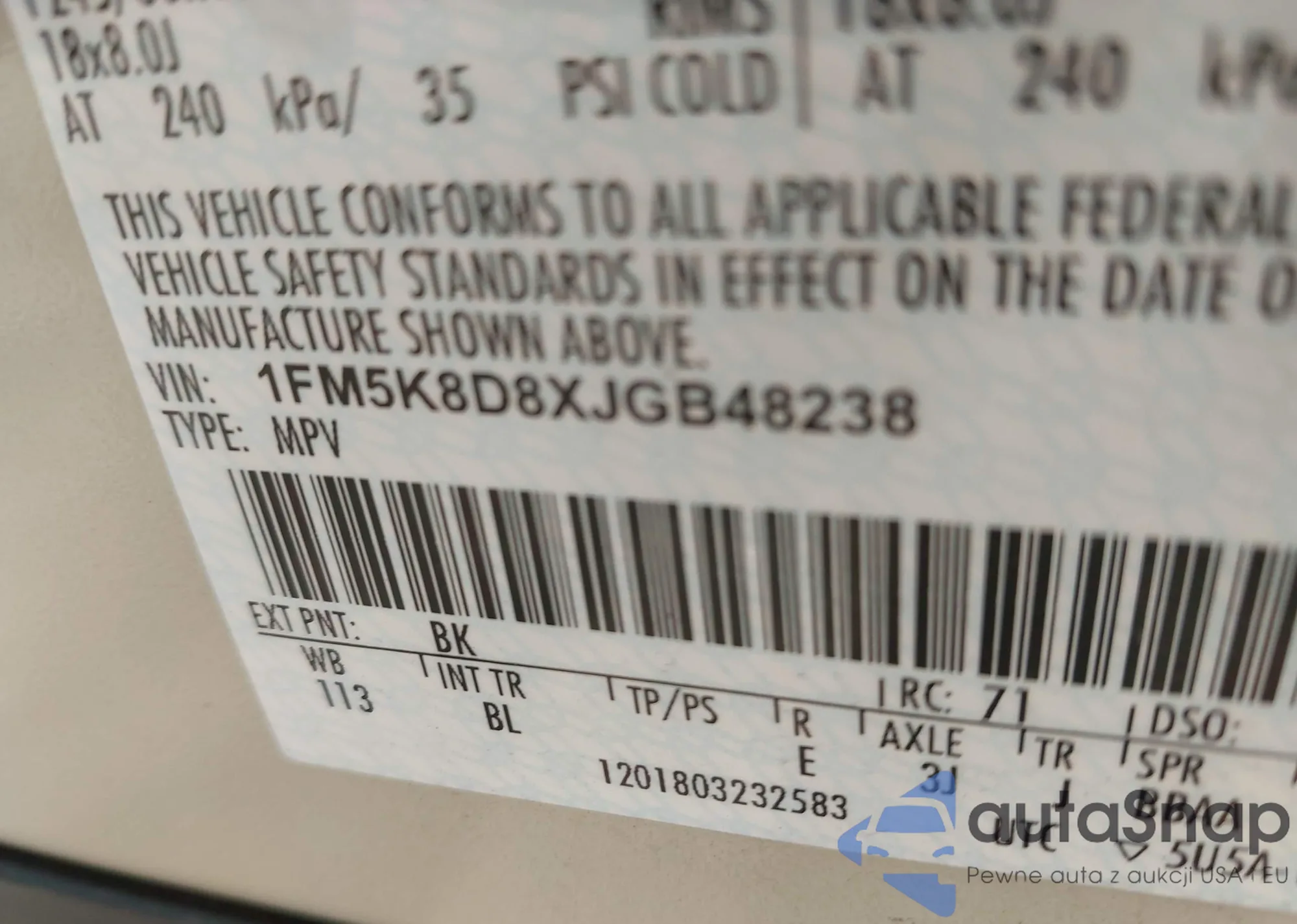 • VIN 1FM5K8D8XJGB48238
