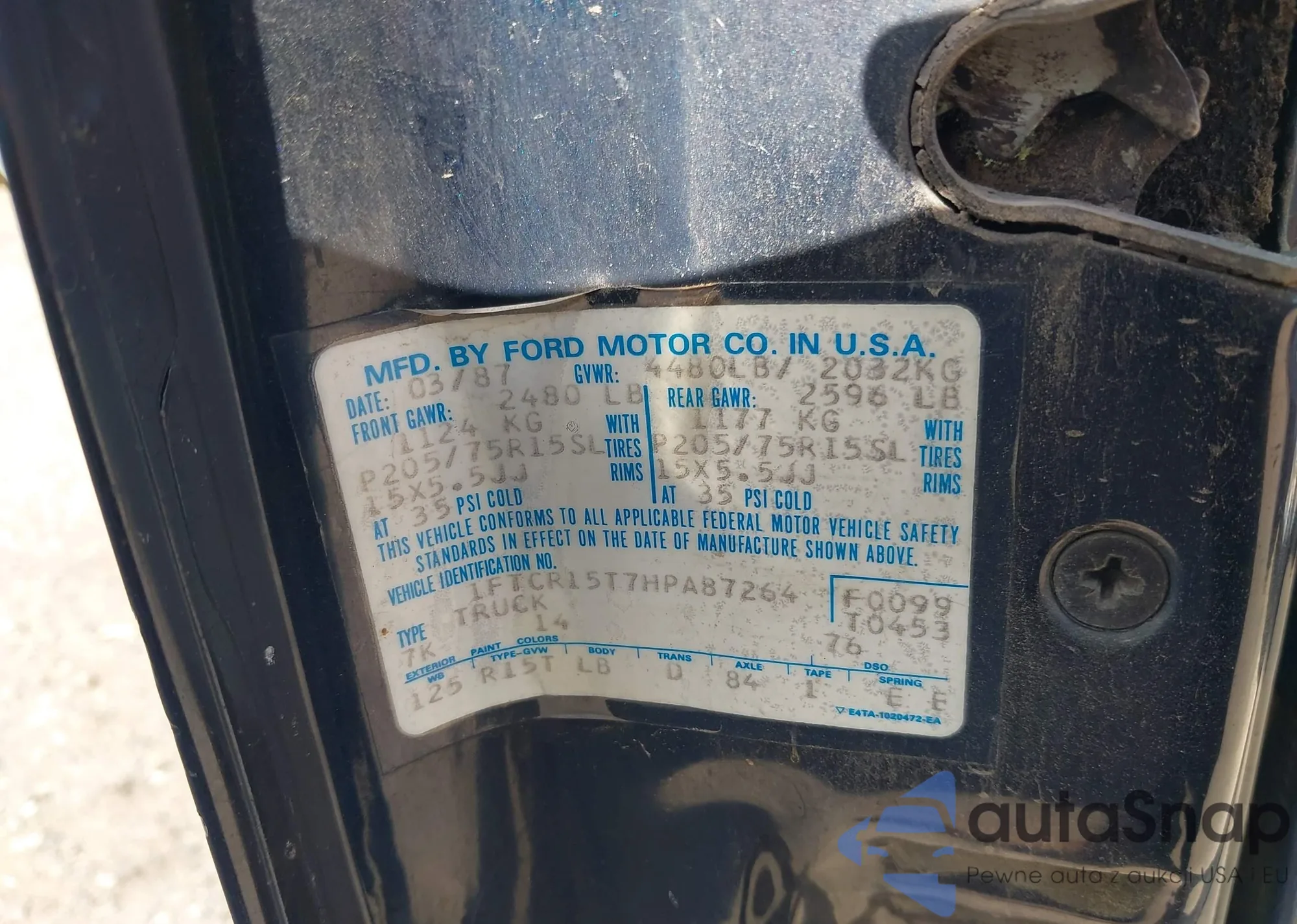 • VIN 1FTCR15T7HPA87264