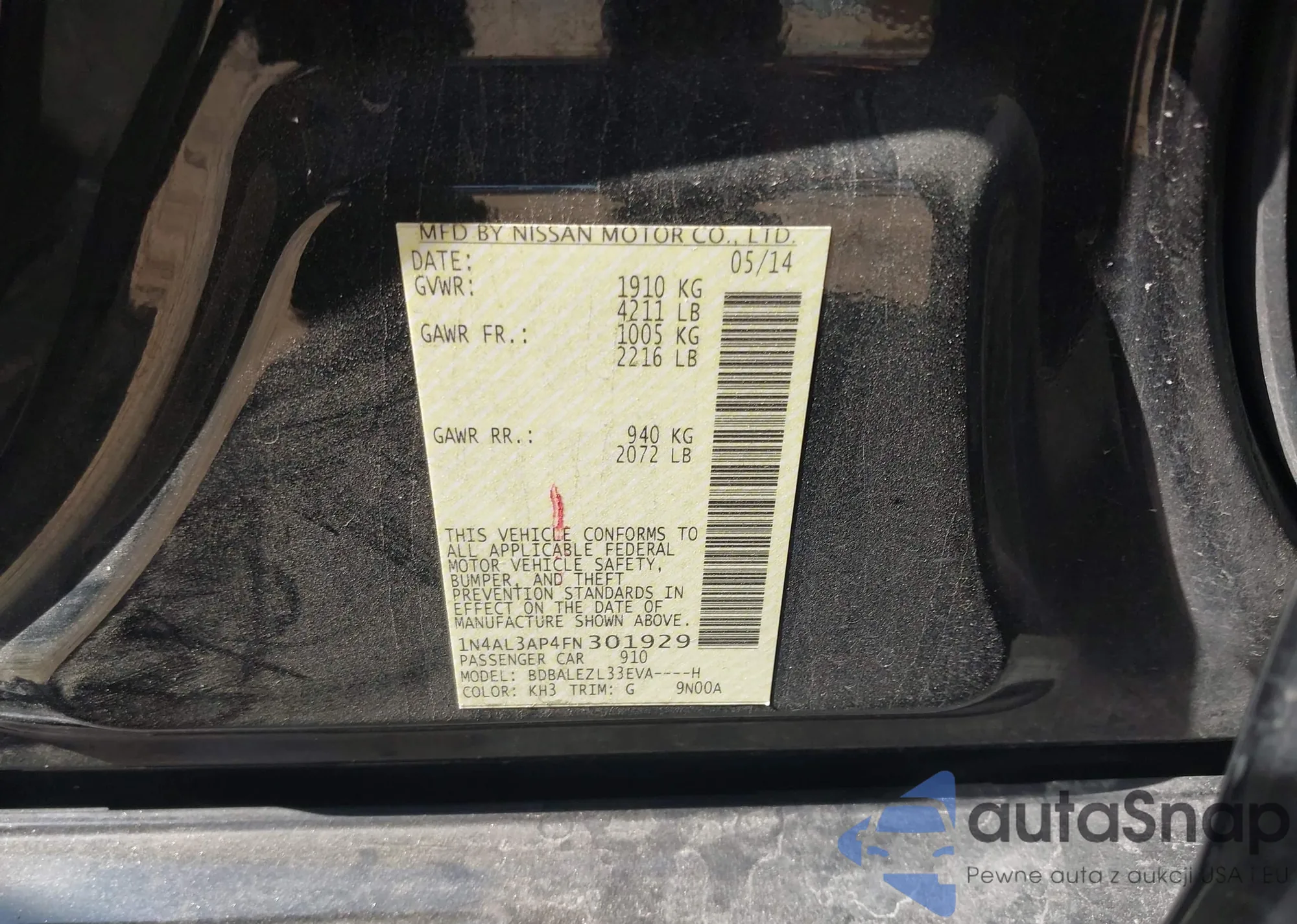 • VIN 1N4AL3AP4FN301929