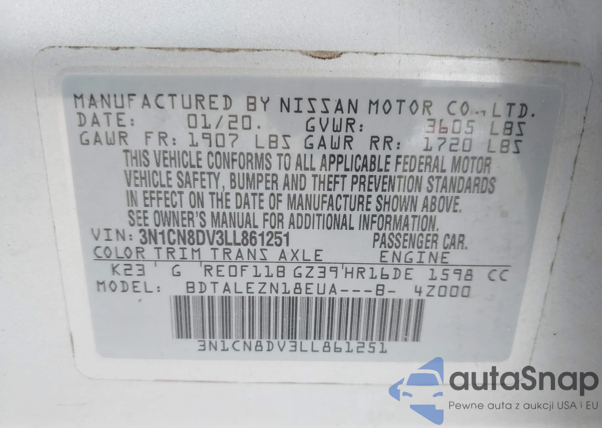 • VIN 3N1CN8DV3LL861251