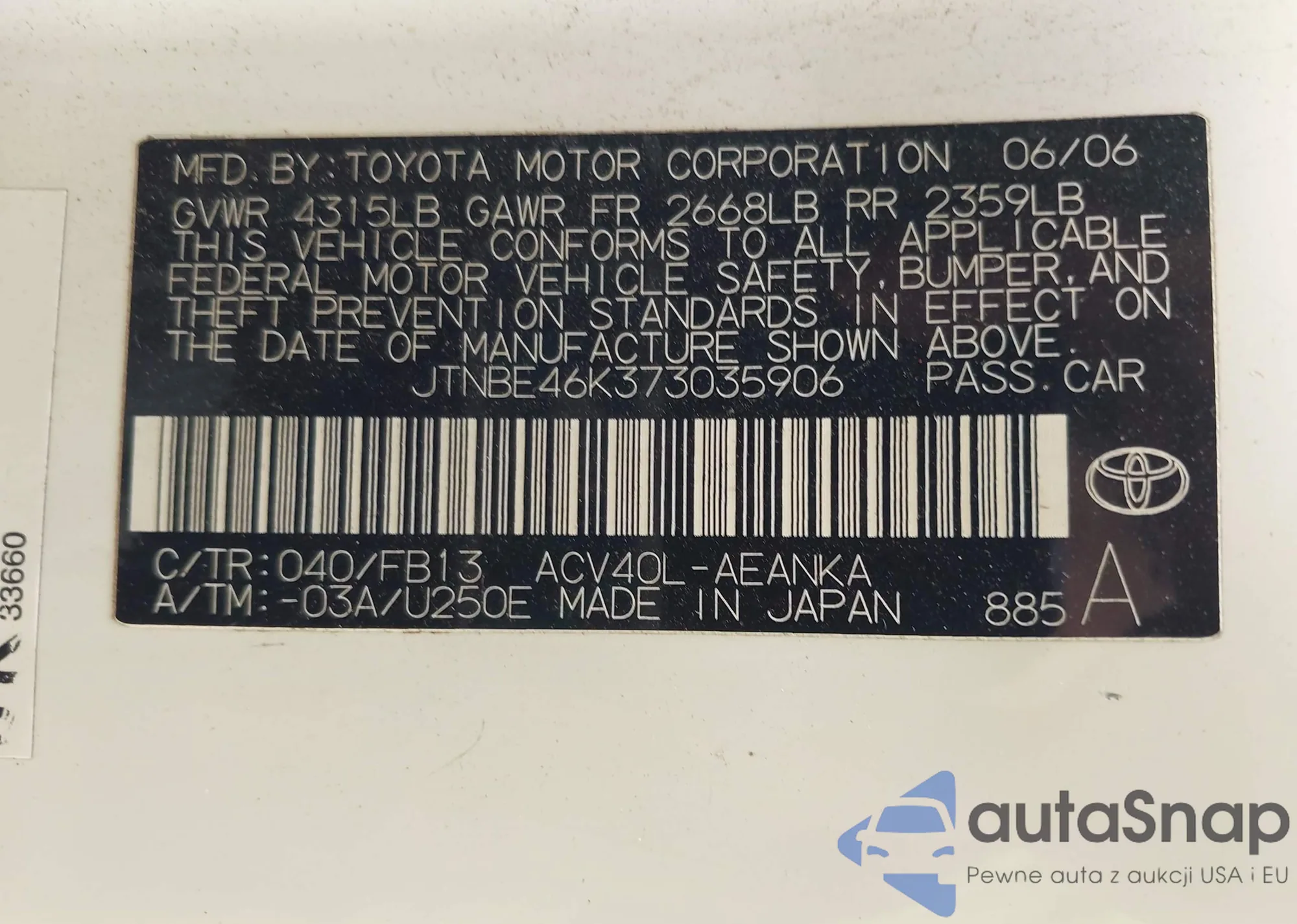 LOT: 42068884 VIN: 3FAHP0HA0AR284491