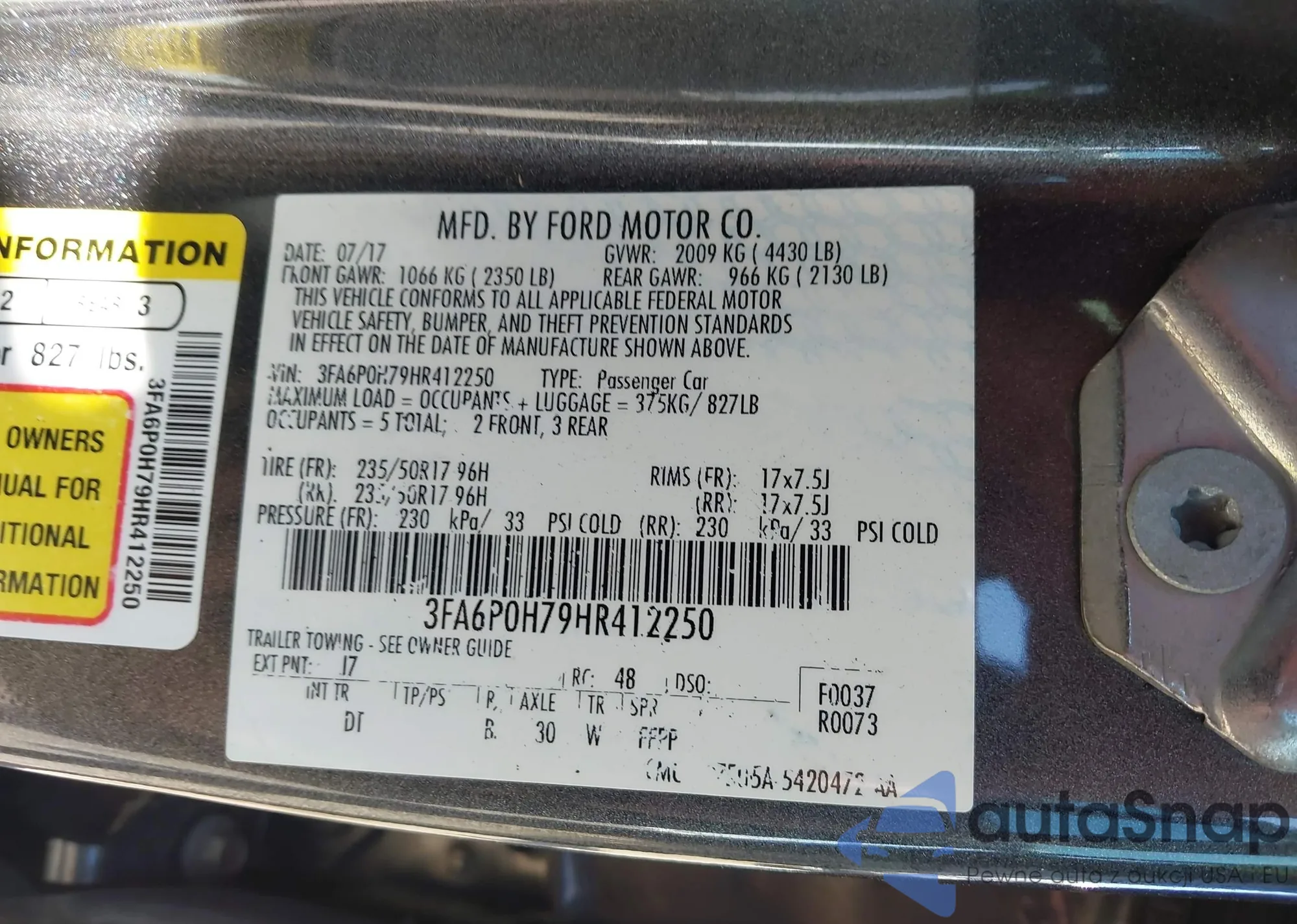 • VIN 3FAHP0HA0AR284491