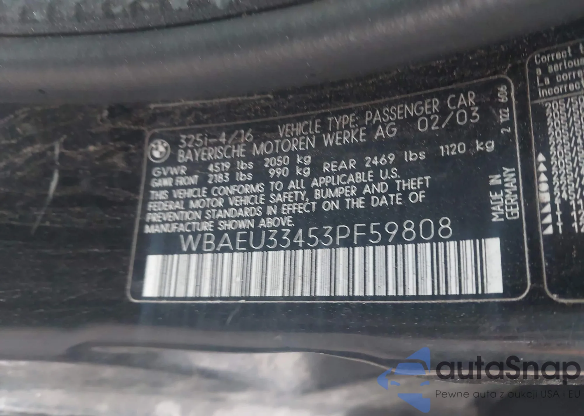 LOT: 42008151 VIN: WBAEU33453PF59808