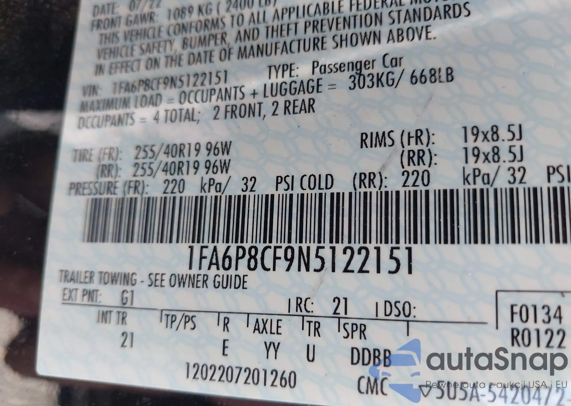 • VIN 1FA6P8CF9N5122151