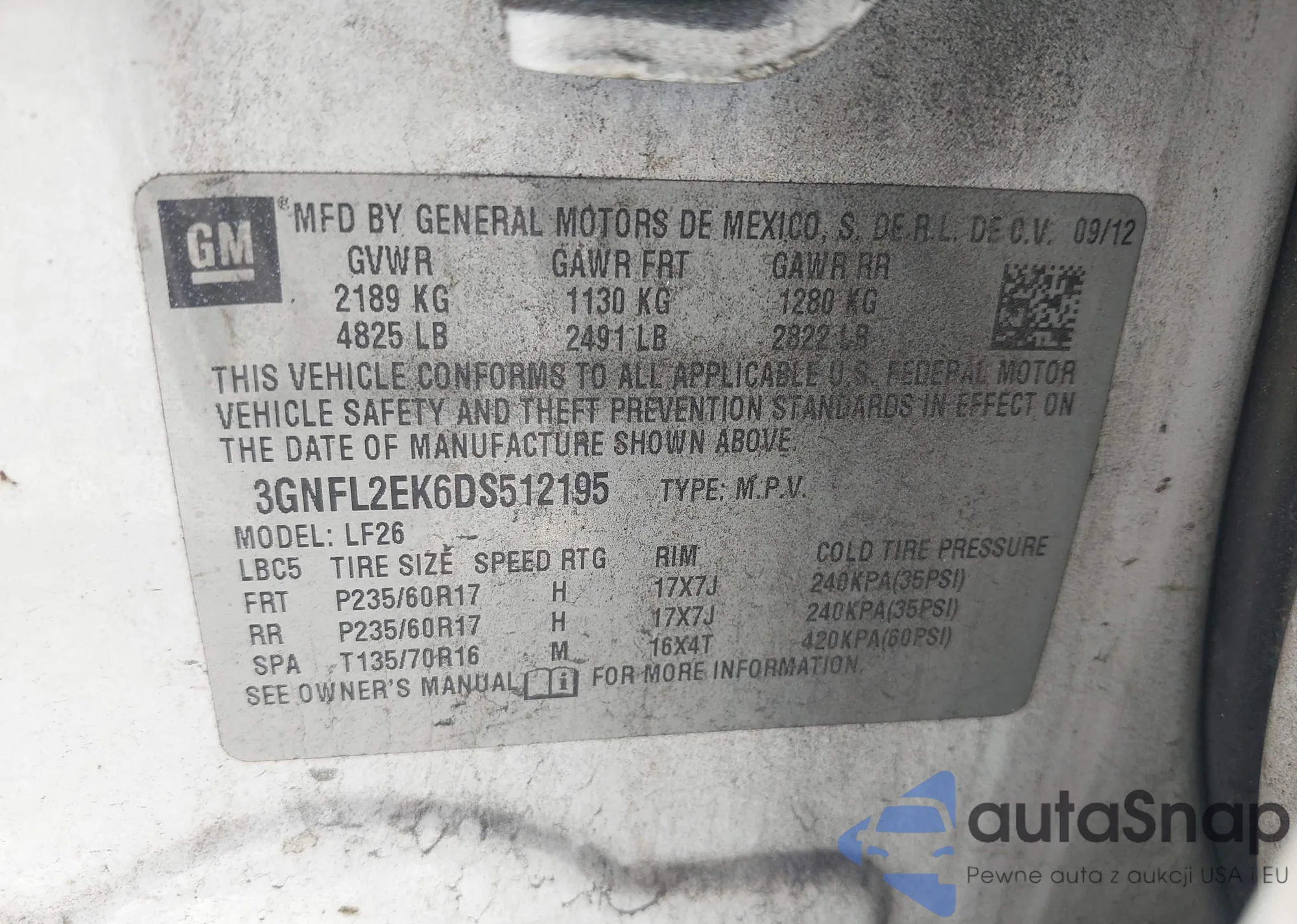• VIN 3GNFL2EK6DS512195